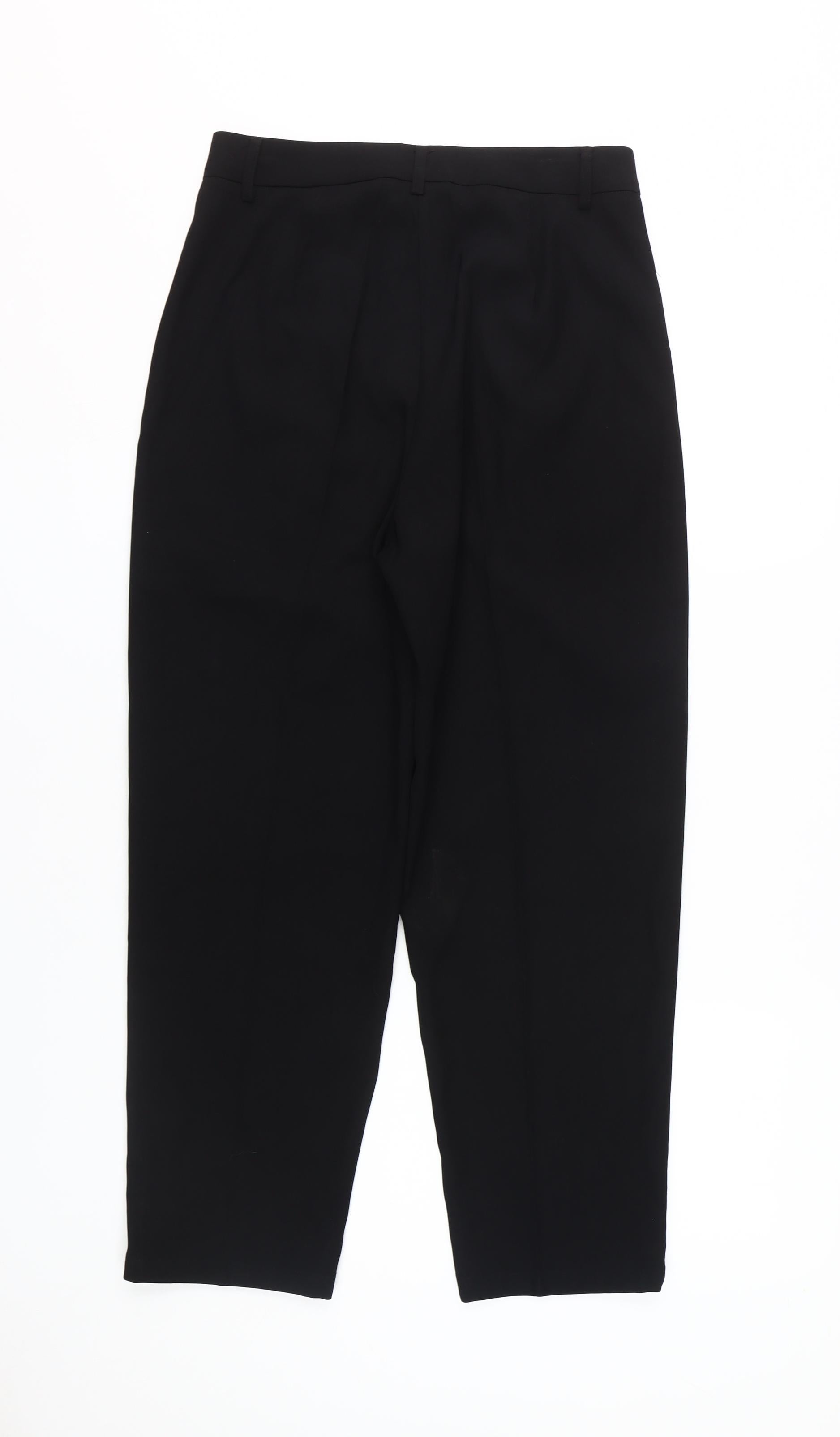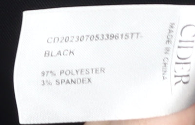 These elegant black trousers from Cider are a versatile addition to any wardrobe, perfect for both casual and work settings. Designed for women, they feature a classic straight leg style with a flattering mid-rise fit. The trousers are made from a soft, durable blend of polyester and elastane, ensuring both comfort and flexibility in your day-to-day activities. The versatile black colour complements virtually any top or accessory, making them an ideal choice for autumn and winter occasions. Whether dressing up for the office or enjoying a casual weekend outing, these trousers offer practicality and style. With a flat front and a secure button closure, these Cider trousers ensure a neat and polished appearance. They present a regular fit perfect for a comfortable day out, conforming nicely to a modern look. Despite being pre-owned, they remain in excellent condition with no signs of wear, allowing you to enjoy great quality without compromise. Add these trousers to your collection for a reliable go-to option when style and functionality are a must.