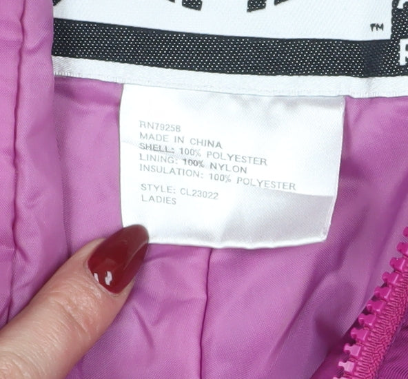 Upgrade your winter wardrobe with these striking purple snow pants from CIMa Skiwear, designed for women who seek both style and functionality in their outdoor attire. Crafted from durable polyester with a nylon lining, these trousers ensure warmth and comfort, making them an essential for your next winter adventure. Featuring an insulated design and an elastic waist, these trousers provide a relaxed fit, making them perfect for travel and casual winter occasions. The zip closure ensures ease of wear while offering additional protection against the cold. Adorned with the CIMa logo accent, these pants bring a touch of branded style to your winter gear. Whether you're hitting the slopes or exploring snowy terrains, these snow pants are your go-to for warmth and style. Don't miss out on this essential addition to your winter wardrobe. They're in excellent condition, showing no visible signs of wear, making them a fantastic choice for those chilly days. Grab them today and experience the perfect balance of comfort and fashion.