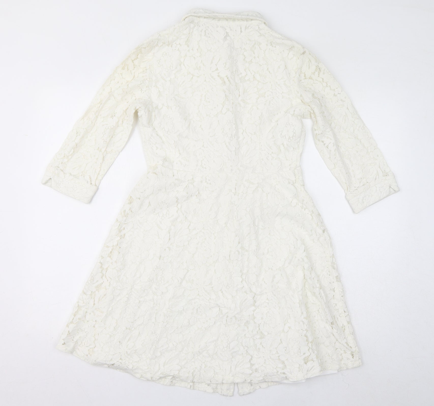 Womens White Cotton A-Line Size 10 Collared Button