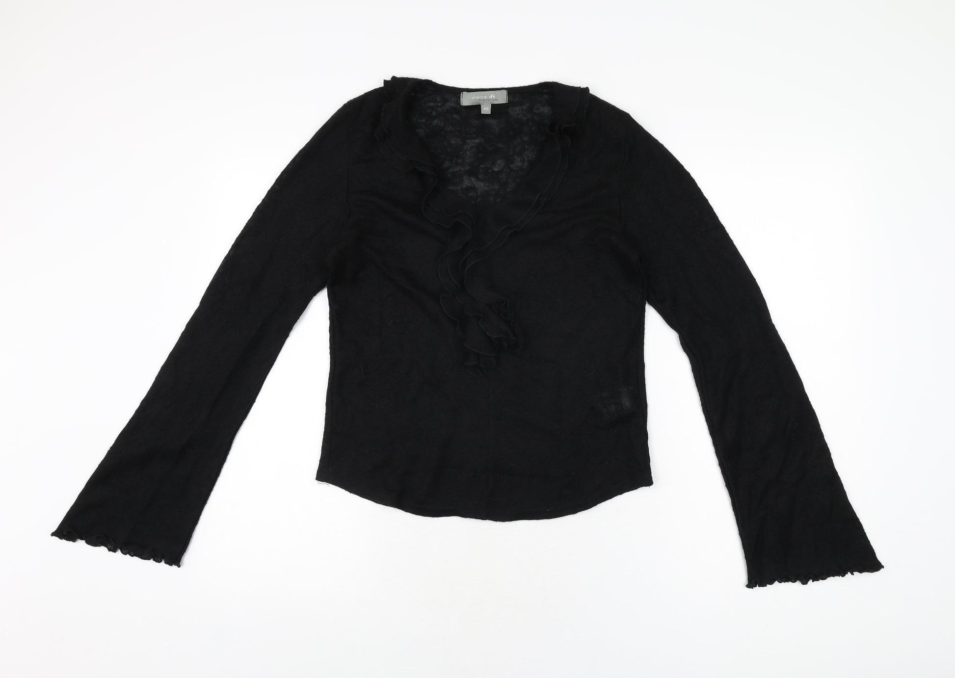 Womens Black Acrylic Basic T-Shirt Size 12 V-Neck