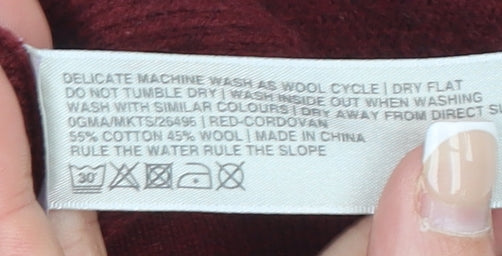 This Clarks Originals men's jumper in a rich red hue offers a timeless and versatile look, perfect for both casual and semi-smart occasions. Designed in size XL, it provides a comfortable regular fit that drapes naturally across the shoulders and chest for easy everyday wear. The classic V-neckline adds a refined touch, making it ideal for layering over shirts or wearing solo for a clean, relaxed style.Crafted from a high-quality blend of 55% cotton and 45% wool, this jumper offers both softness and warmth, making it an excellent choice for cooler weather during autumn, winter, and early spring. The fine knit construction ensures a smooth texture and lightweight feel whilst maintaining breathability and flexibility. The material composition allows for insulation without bulk, keeping you comfortably warm yet unrestricted. Designed to be machine washable, it’s easy to maintain—best washed on a delicate cycle and laid flat to dry.The deep red, cordovan shade complements a wide range of outfits and adds a subtle pop of colour to neutral trousers or dark denim. Small design details, such as the subtle logo mark on the chest and neat double-stitched hems with a touch of contrast at the trim, deliver understated sophistication synonymous with Clarks Originals craftsmanship.In very good pre-owned condition, this jumper shows minimal wear and maintains its structural integrity and rich tone. It’s an effortlessly stylish wardrobe staple that can be dressed up or down depending on the occasion—pair it with chinos for a smart casual ensemble, or wear it with jeans for everyday comfort.Ideal for men seeking a fashionable yet practical jumper, this Clarks Originals piece combines classic British design with dependable comfort and quality fibre composition. An excellent choice for transitional seasons and an easy layer under jackets or coats when temperatures drop.
