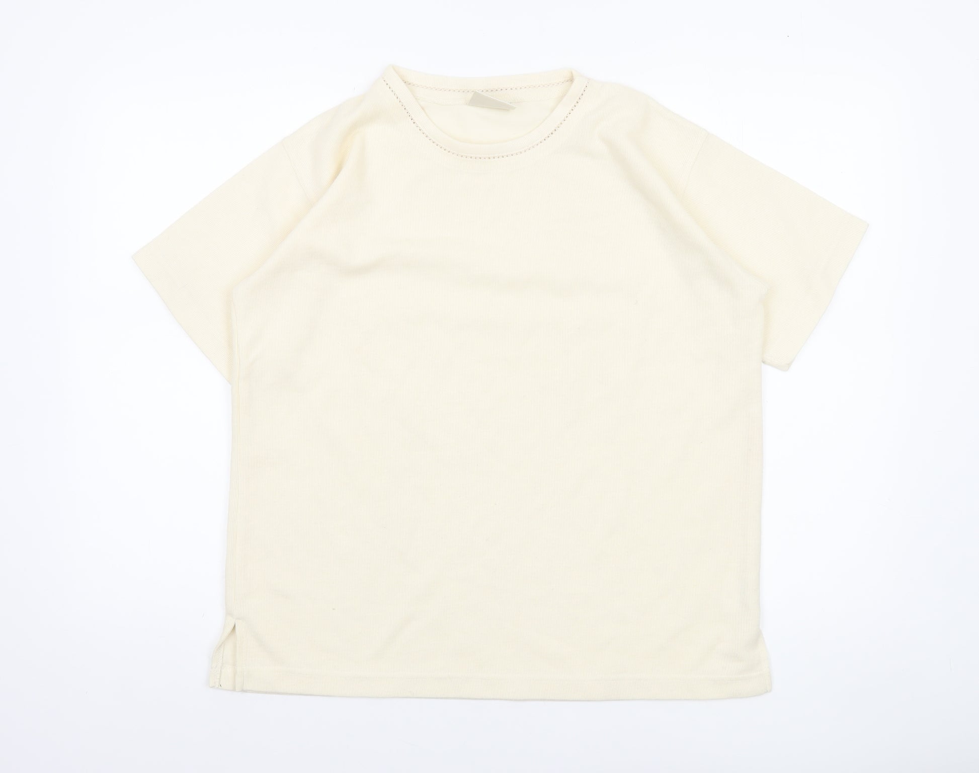 Add a timeless staple to your everyday wardrobe with this women's ivory short sleeve T-shirt from Classic Collection. Designed for ultimate comfort and style, this top blends 52% polyester, 28% cotton, and 20% viscose to create a wonderfully soft, lightweight jersey fabric that drapes beautifully while keeping its shape wash after wash. The breathable construction ensures all-day comfort, making it perfect for layering or wearing on its own during warmer months. With its simple yet elegant crew neck and clean silhouette, this basic T-shirt offers effortless versatility that suits casual outings, relaxed weekends, or even under a blazer for a laid-back professional look. The crisp ivory tone pairs effortlessly with denim, skirts, or tailored trousers, giving you endless outfit options. Made for the modern woman who values style and practicality, it is ideal for spring and summer wear. The Classic Collection label ensures quality and durability, while the regular fit and short sleeves provide ease of movement and a flattering finish. In excellent condition, showing only minimal signs of gentle use and no visible marks or damage, this top is a smart, affordable addition to any wardrobe. Whether you’re refreshing your basics or adding layering essentials, this T-shirt delivers everyday simplicity with elegant charm. Update your style effortlessly with this versatile piece and enjoy comfort and sophistication in one easy choice.
