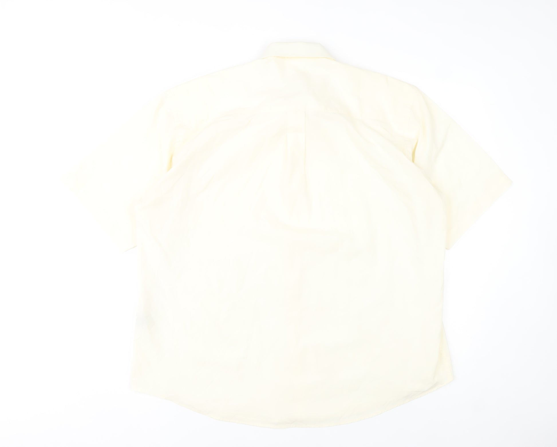 This Classic Shirtings men's short sleeve dress shirt is a timeless and versatile addition to any formal or business wardrobe. Designed in a clean ivory tone, it offers a refined and polished look suitable for business meetings, formal events, or smart casual wear. The shirt is crafted from a durable yet comfortable blend of 65% polyester and 35% cotton, combining the resilience of polyester with the natural breathability of cotton for easy maintenance and comfort. The smooth woven fabric gives the shirt a crisp structure, while its lightweight feel ensures comfort throughout the day. Its classic point collar and single chest pocket enhance its traditional appeal, making it suitable for pairing with a tie or wearing open-collared for a more relaxed look. The shirt features a button-down front closure with smooth matching buttons and a regular fit that drapes neatly without feeling restrictive. With practical features like easy-care, lightweight fabric, and wrinkle resistance, it’s ideal for men who prefer straightforward style without high maintenance. This particular shirt is in very good pre-owned condition, showing only minimal signs of wear with no visible stains or damage. The size is labelled L (42 cm neck), providing a comfortable fit around the chest and shoulders. It’s perfect for updating your smart wardrobe with a reliable essential piece that blends classic tailoring with practicality. Whether worn tucked into dress trousers for work or paired with chinos for a polished weekend look, this Classic Shirtings piece ensures you always look sharp. With its neutral ivory shade, it also pairs effortlessly with a wide range of suit colours, from navy and grey to beige and black.