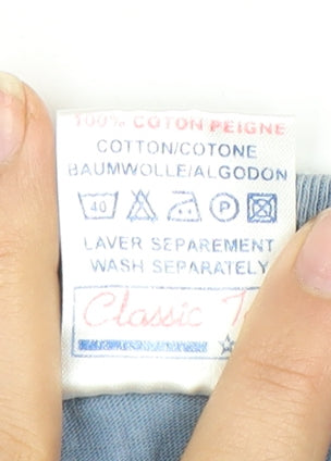 Discover effortless style with this Classic Tee Men's T-Shirt in a versatile blue hue. Crafted from 100% cotton, this piece offers comfort with every wear. Its crew neck and short sleeves provide a timeless look that is ideal for casual occasions. The solid pattern and jersey fabric type highlight its simplicity, making it a perfect match for jeans or shorts. Though slightly wrinkled, the shirt remains in excellent condition. Perfect for layering or wearing alone, it’s a staple for every man's wardrobe. Machine washable for your convenience.