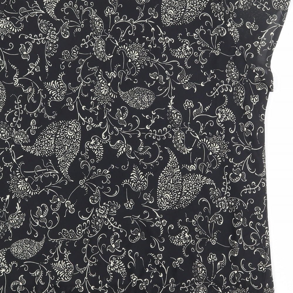 Womens Black Geometric Polyester Basic T-Shirt Size 26 V-Neck