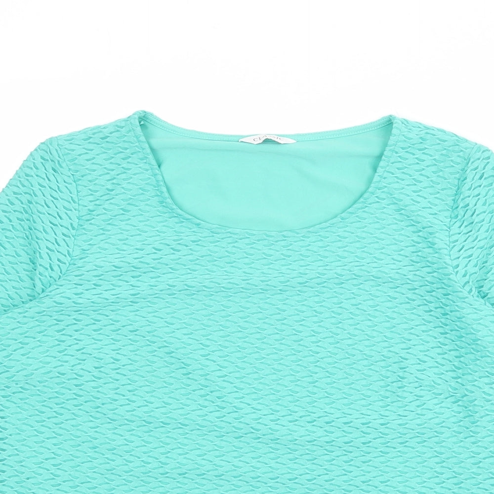 Womens Green Polyester Basic T-Shirt Size 14 Round Neck