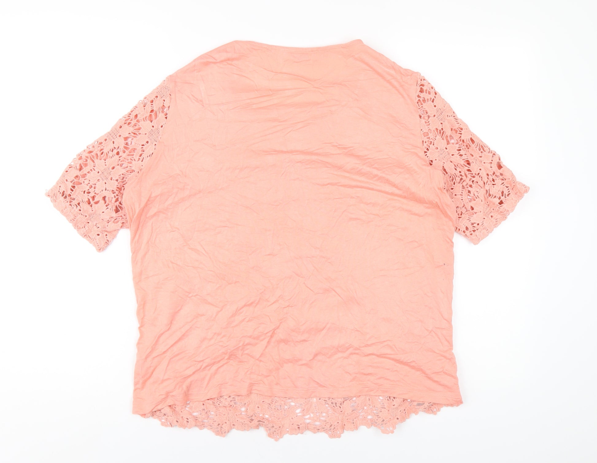 Womens Pink Cotton Basic T-Shirt Size 16 Round Neck