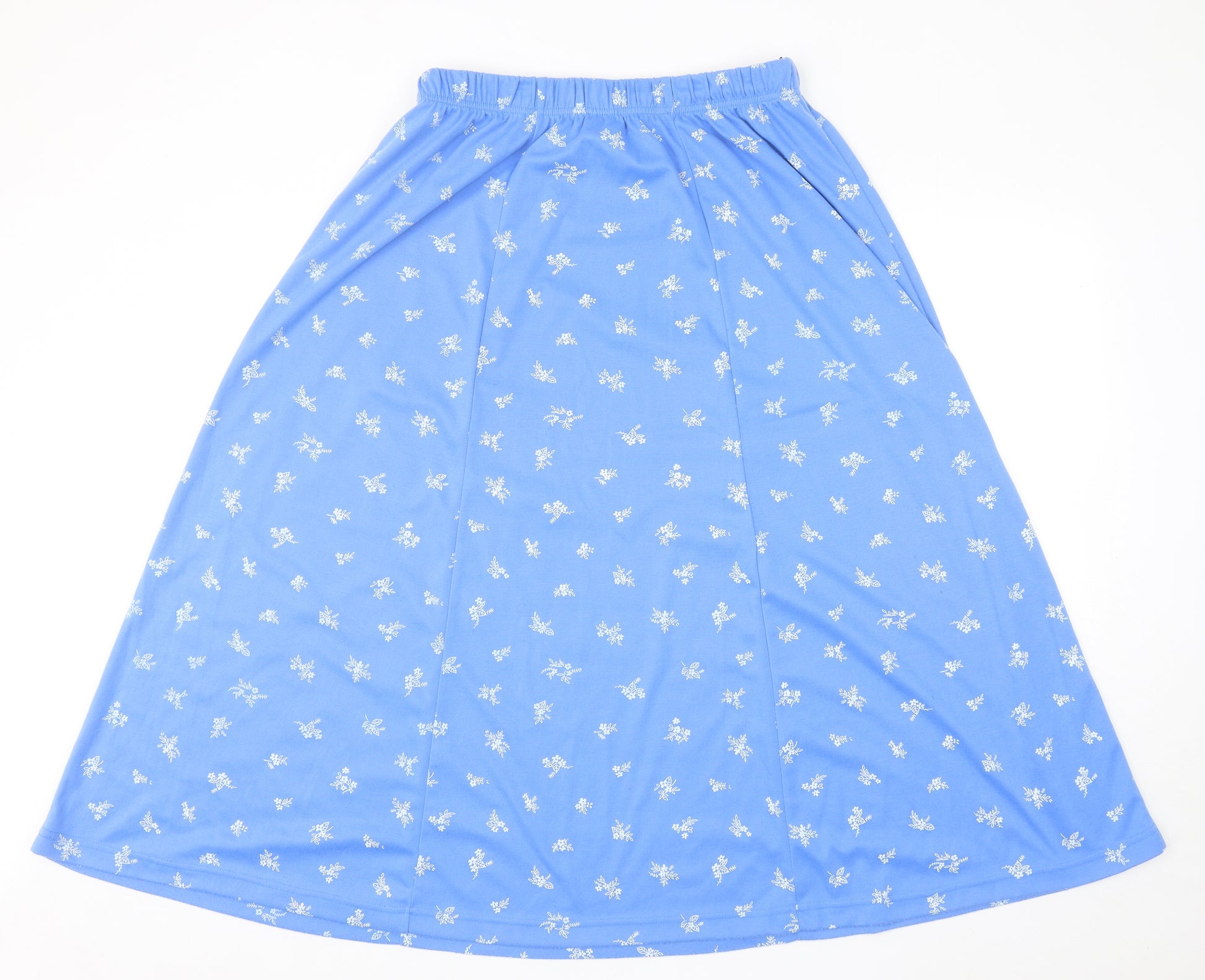 Womens Blue Floral Polyester Swing Skirt Size 18