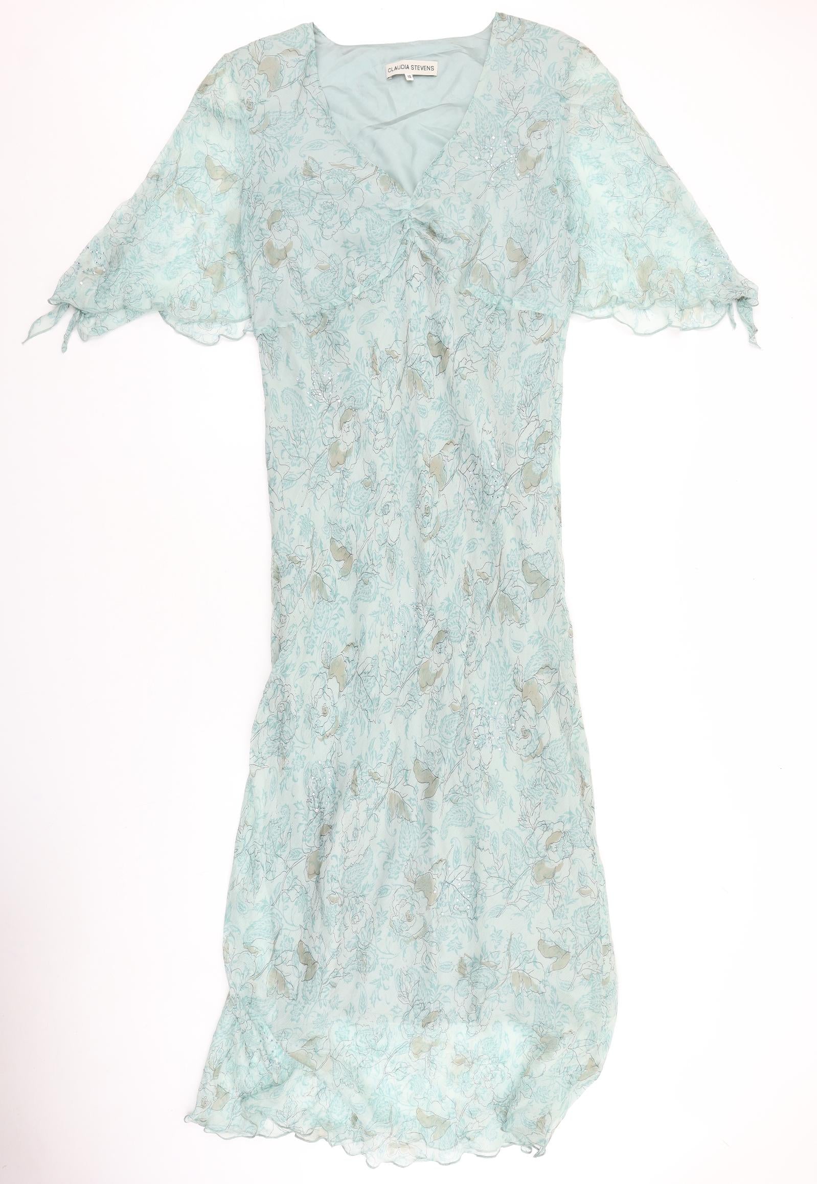 Womens Blue Floral Polyester Maxi Size 18 V-Neck Pullover
