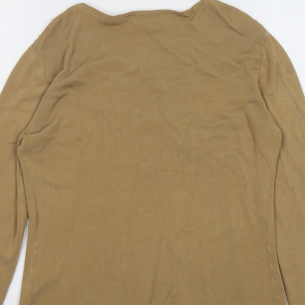 Womens Beige Round Neck Viscose Cardigan Jumper Size M