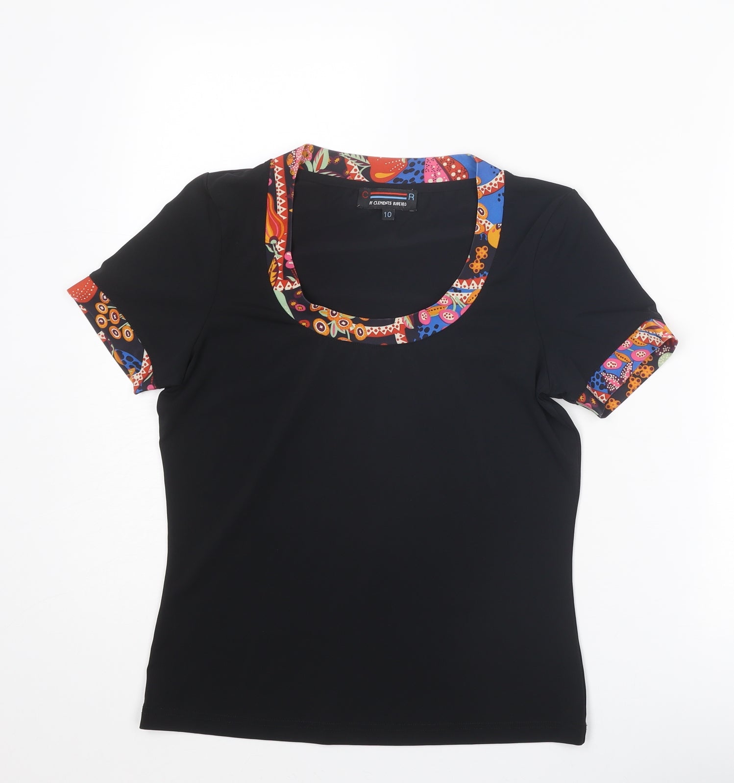 Womens Black Polyester Basic T-Shirt Size 10 Scoop Neck