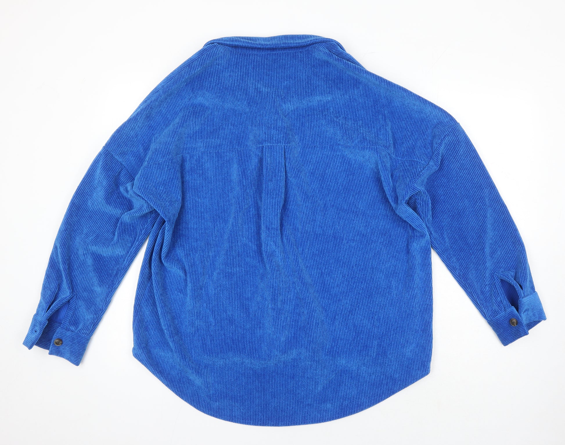 Womens Blue Polyester Basic Blouse Size 12 Collared