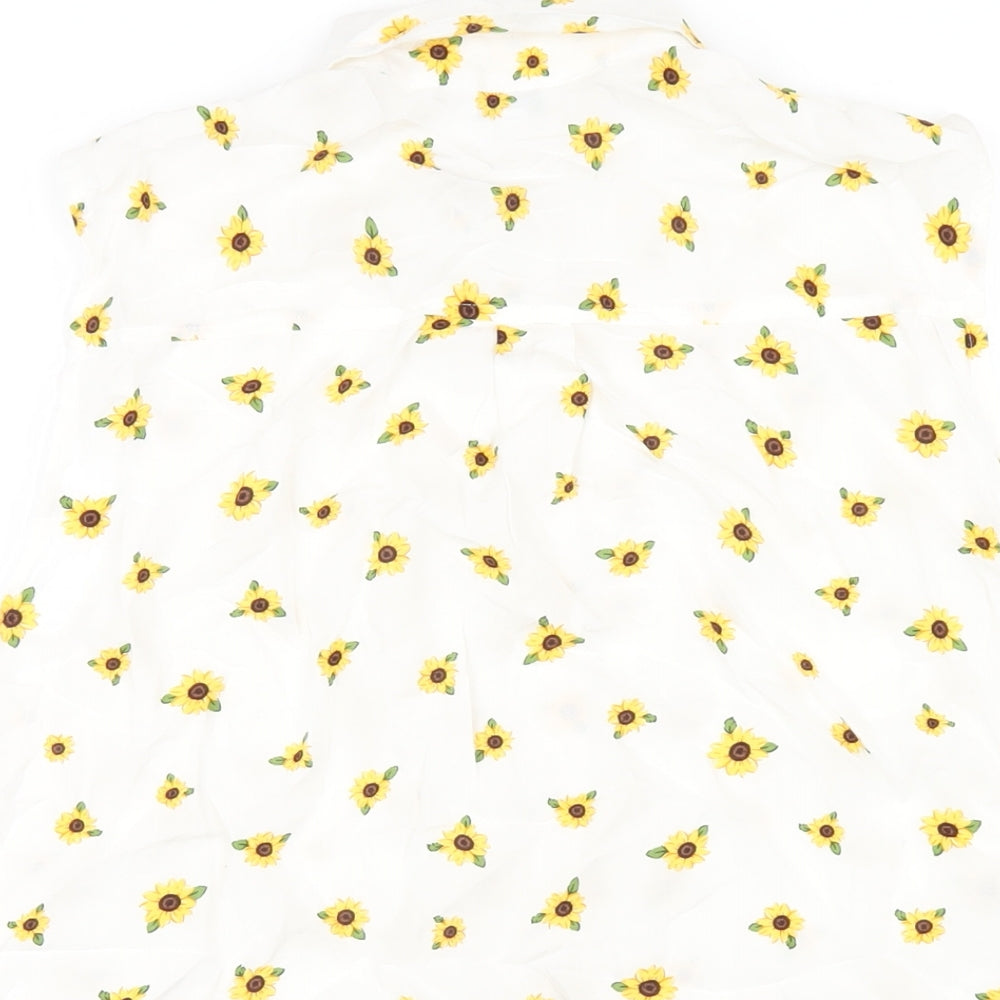 Womens White Geometric Viscose Basic Button-Up Size 12 Collared