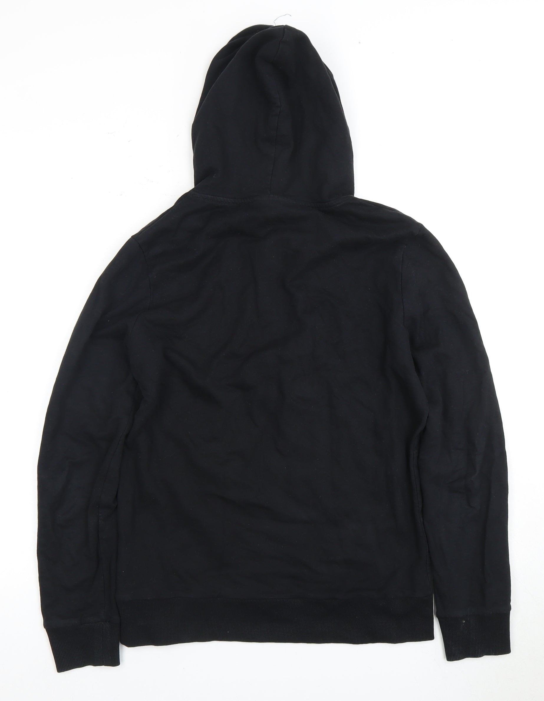 The Closure London Men's Black Hoodie in size XS is a stylish addition to any casual wardrobe. Featuring a sleek pullover design, this hoodie is perfect for those who seek both comfort and modern flair. It is crafted from a soft jersey fabric blend of 95% cotton and 5% elastane, ensuring a comfortable fit that adapts to your movements. The hoodie is equipped with a practical drawstring closure, allowing you to adjust the hood for optimal coverage. An eye-catching logo detail adds a touch of brand recognition without overpowering the minimalist design. This versatile hoodie also features a front kangaroo pocket, perfect for keeping your hands warm or for storing small essentials. Its crew neck design and regular fit make it flattering and easy to wear during any season. Whether you're layering up for a chilly day or simply lounging at home, this black hoodie is a reliable choice. Machine washable for easy care, it's an excellent option for those with a busy lifestyle. With minor wear and no original tags, it's in excellent condition and ready to be a part of your wardrobe.