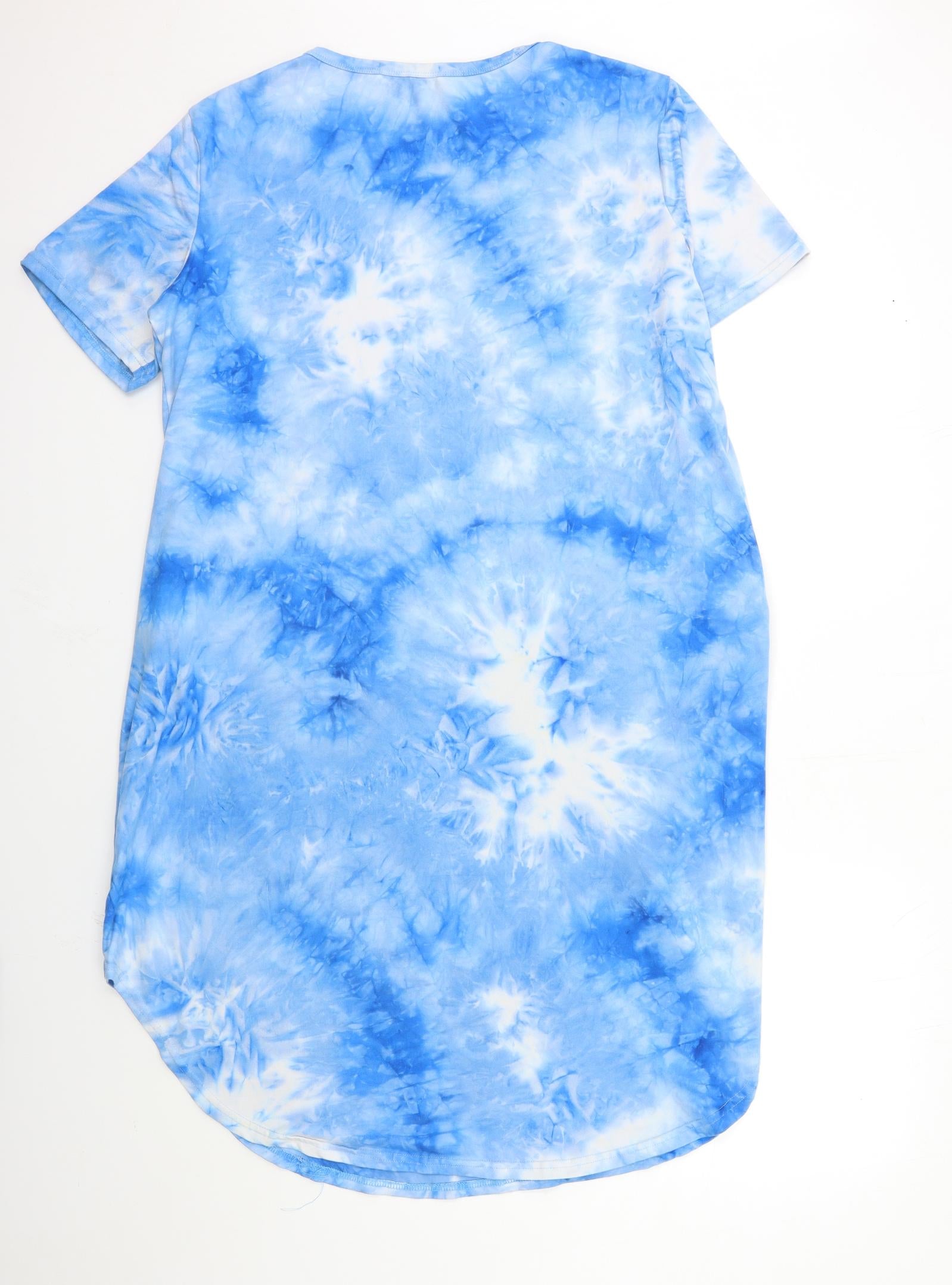 Purple Womens Blue Geometric Polyester Tank Dress Size XL Halter Pullover