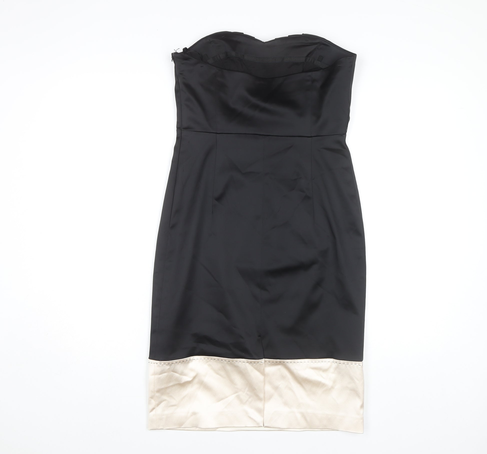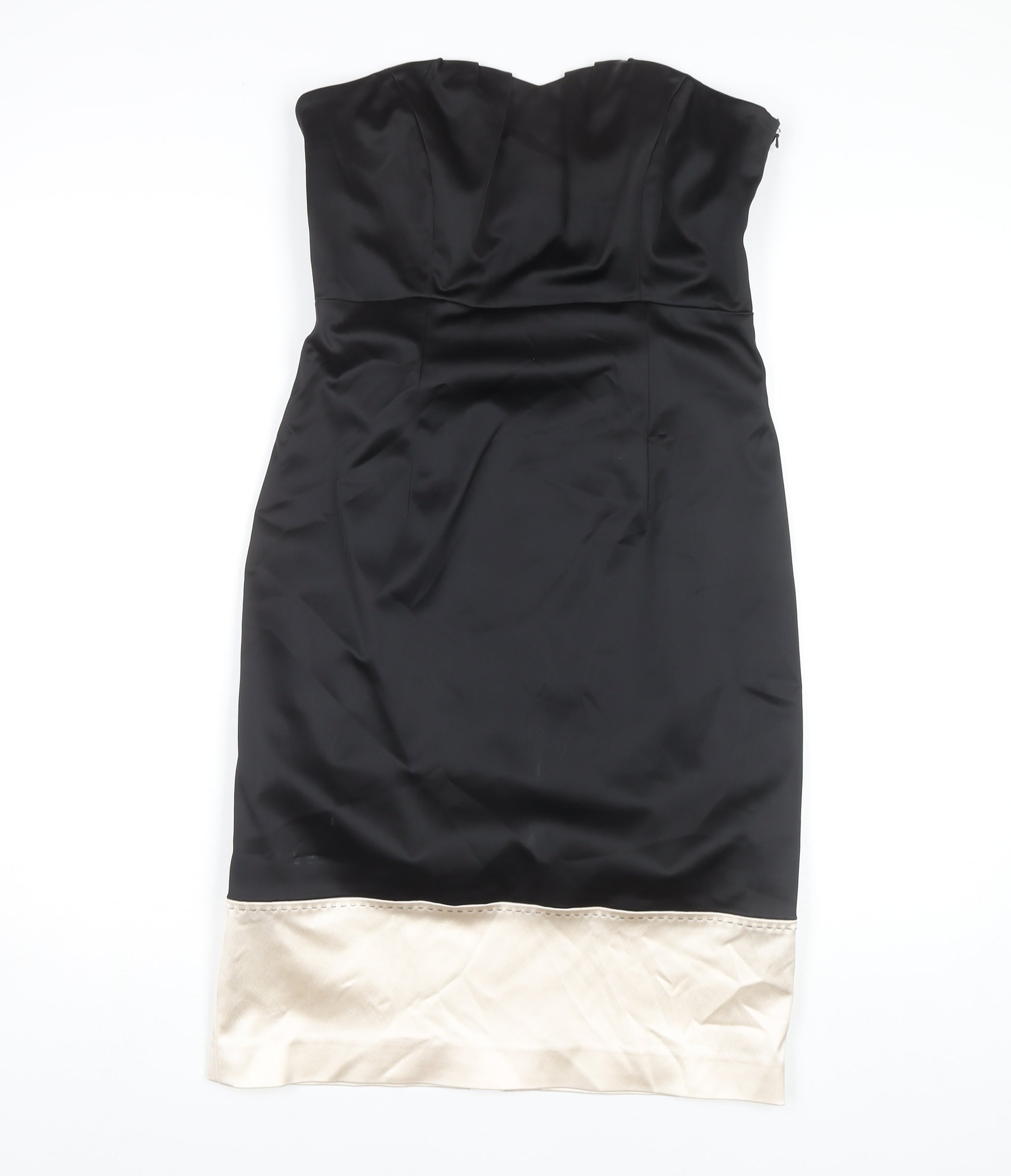 Step into elegance with this stunning Coast strapless dress, perfect for your next cocktail party or special occasion. Crafted to complement the feminine silhouette, this black dress is designed to make any evening unforgettable. Made from a delightful blend of acetate, polyamide, and elastane, it offers subtle stretch and a flattering fit, ensuring comfort alongside style. The sweetheart neckline adds a touch of romantic charm, making this piece suitable for gatherings where you want to leave a lasting impression. Designed in a timeless black with no pattern, this dress is both classic and versatile, providing a perfect backdrop for any statement accessories you decide to pair it with. This women's dress features a sophisticated lining and a reliable zip closure at the back ensuring seamless wear. Sized at a UK 12, it’s fashioned as a regular fit, designed for comfort and form. Its chic detailing encapsulates the enduring elegance synonymous with the Coast brand. Please note the dress has no significant signs of tears or stains but does present slight creasing visible on inspection, affecting neither its beauty nor wearability. Whether you're attending a cocktail party or an elegant evening soiree, this Coast dress is a refined choice with its classic style, making it an essential addition to your wardrobe.