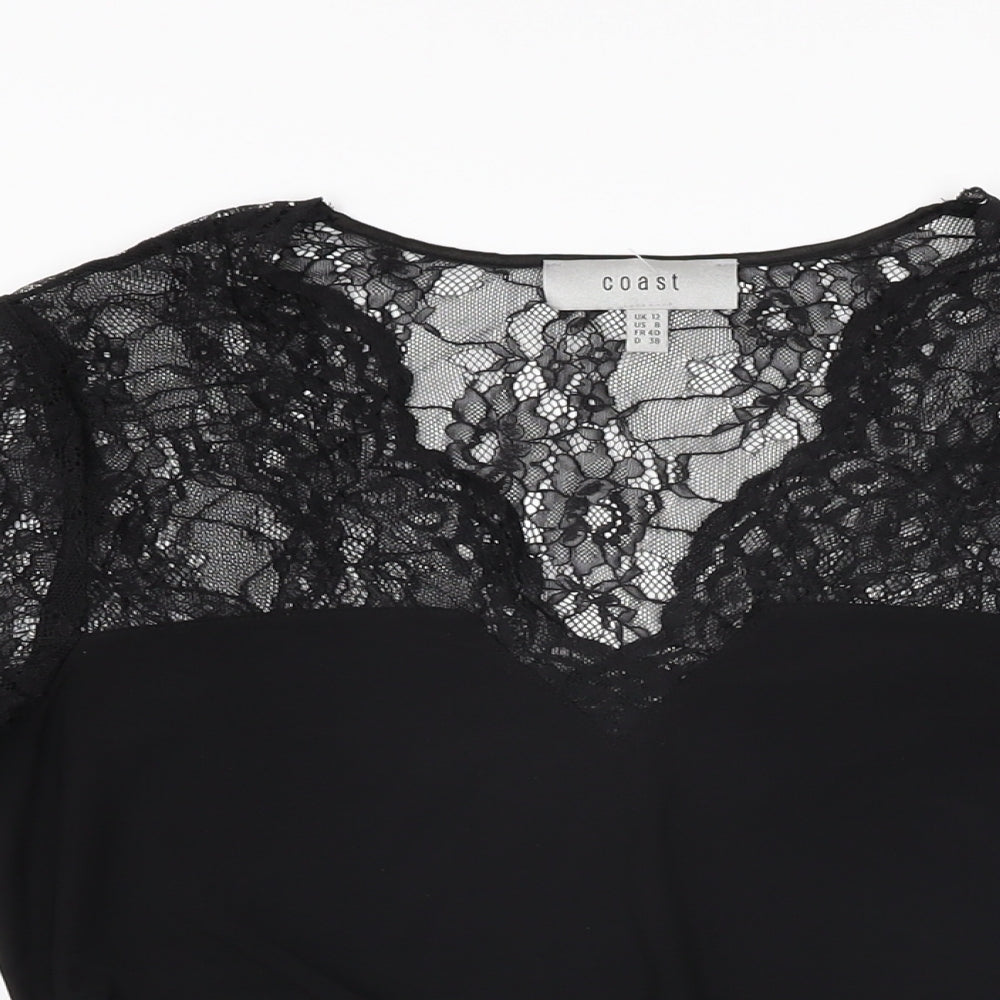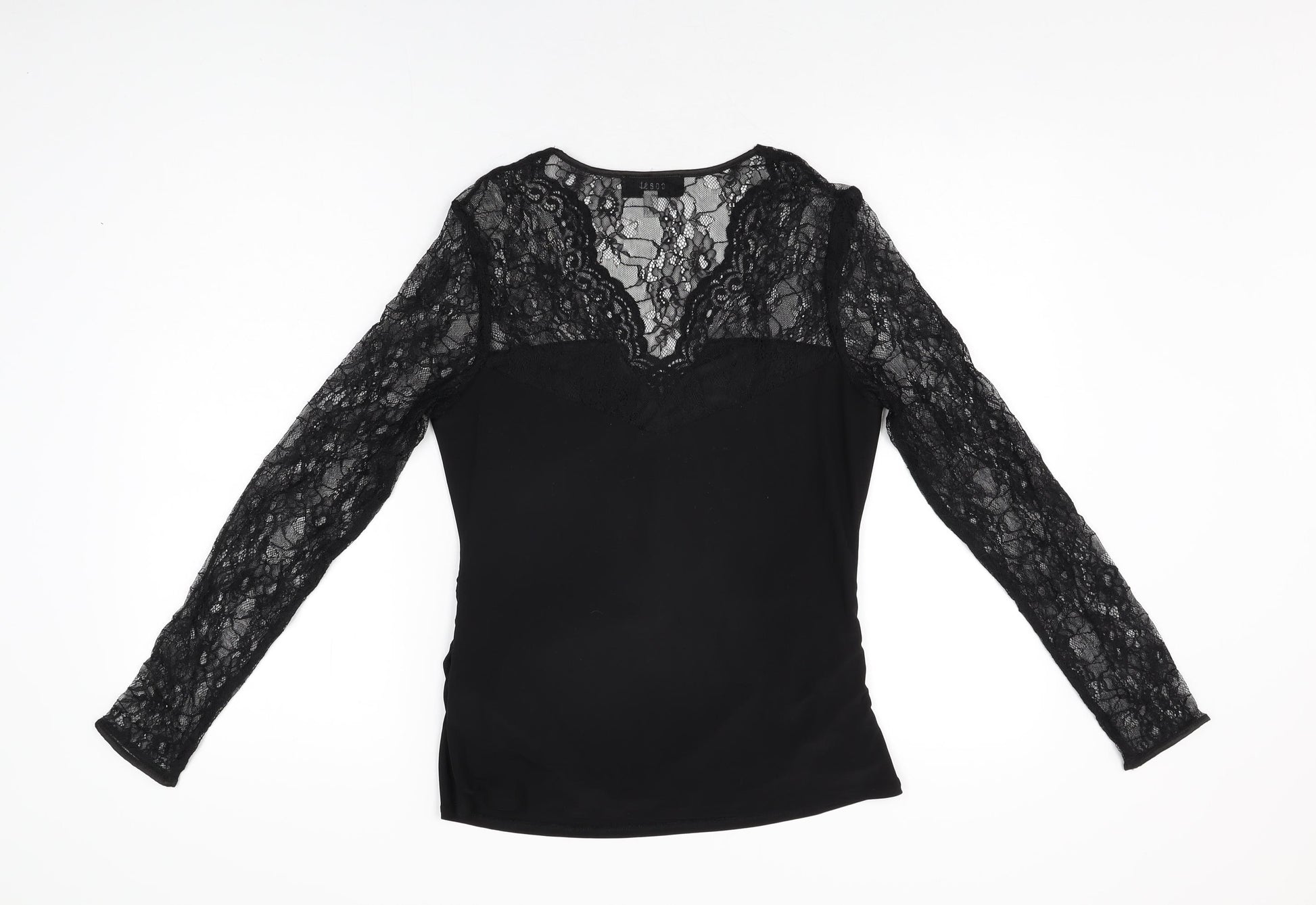 Womens Black Polyester Basic T-Shirt Size 12 V-Neck