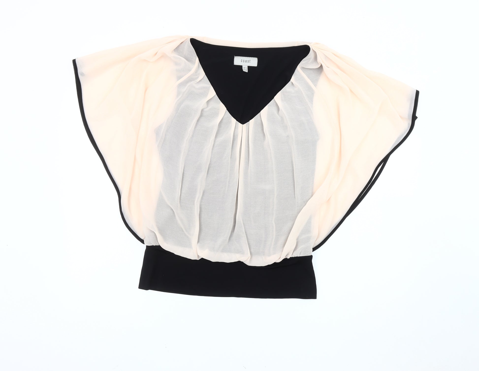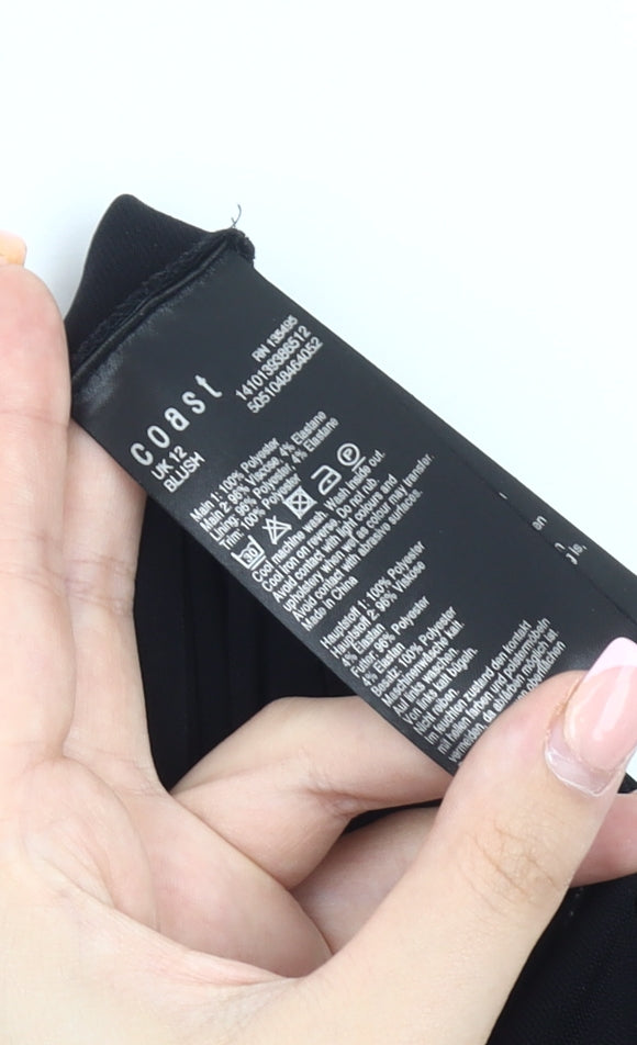 Elevate your wardrobe with this chic Coast Women's Black Tunic Blouse, perfect for adding a sophisticated touch to your outfit. Designed with a classic V-Neck and flutter sleeves, this stylish blouse in size 12 offers a flowing silhouette that flatters and enhances your natural shape. The solid black colour makes it a versatile piece that can easily transition from day to night, suitable for various occasions, especially party or cocktail events. Crafted from a high-quality woven fabric blend of 100% Polyester and Elastane, this blouse ensures durability while offering comfort and ease of movement. The tunic style adds a touch of elegance, making it ideal for those looking to update their wardrobe with a contemporary piece that also offers timeless appeal. Whether paired with tailored trousers for a business setting or a chic skirt for a night out, this blouse will serve as a reliable staple in your collection. Its new condition, evident by the attached tags, guarantees your satisfaction with this pristine item. Keep it in top condition with its machine washable fabric, allowing for easy care and long-lasting wear. Don't miss the opportunity to own this stylish and versatile blouse, perfect for the modern woman.