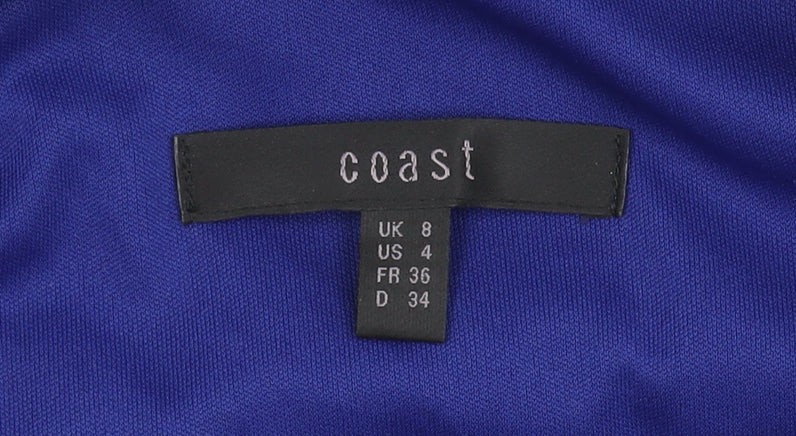 This stunning blue sheath dress from Coast is perfect for any party or cocktail event this summer. Crafted from a luxurious blend of polyamide, cotton, and viscose, it features a delicate lace overlay with a chic floral pattern. The strapless design and cowl neck add a touch of elegance, while the knee-length silhouette provides a flattering fit for any figure. Lined for comfort, it's lightweight and made for celebrating special moments. Style it with your favourite heels and statement jewellery for a look that turns heads.