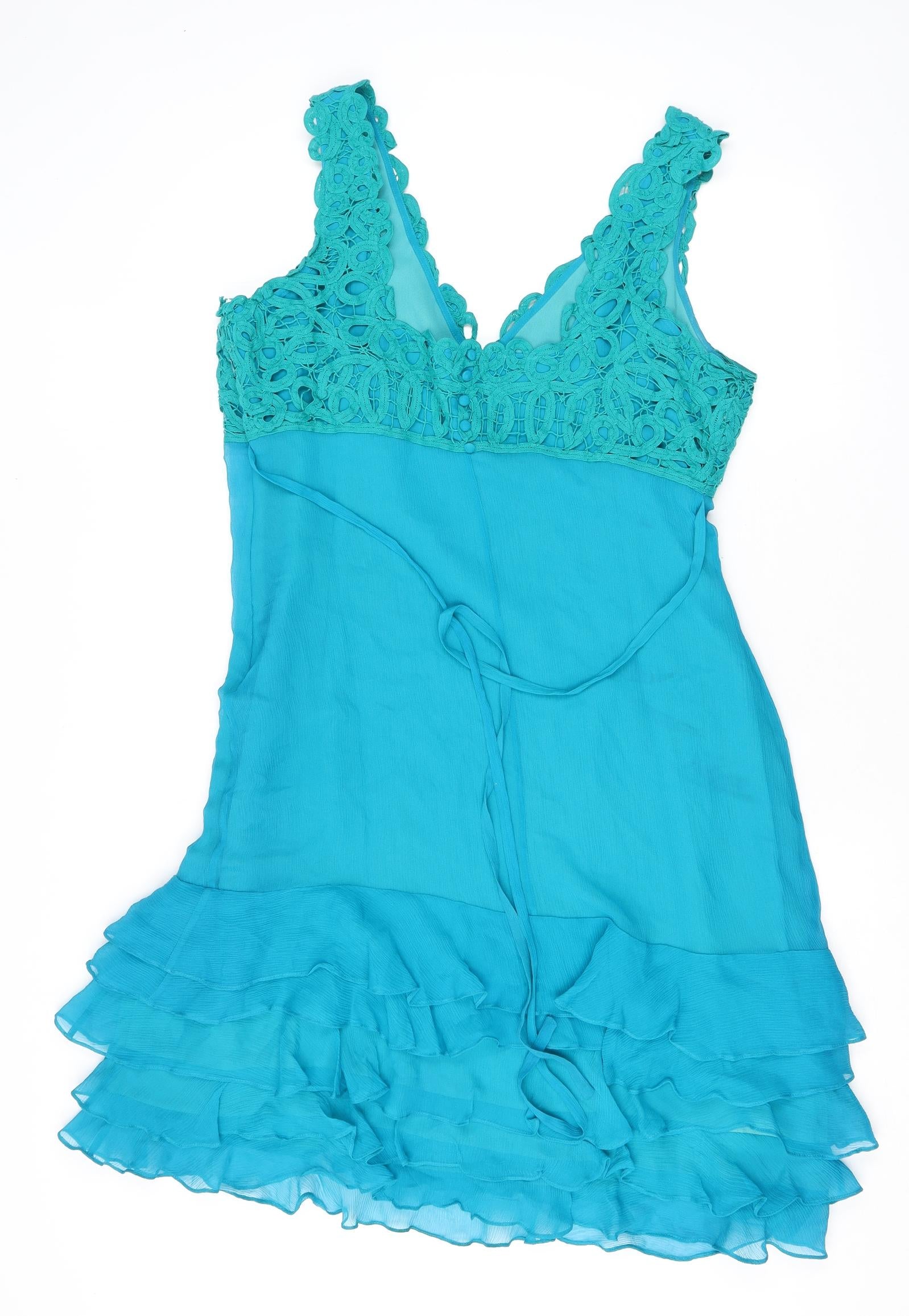 Womens Blue Silk Tank Dress Size 18 V-Neck Pullover
