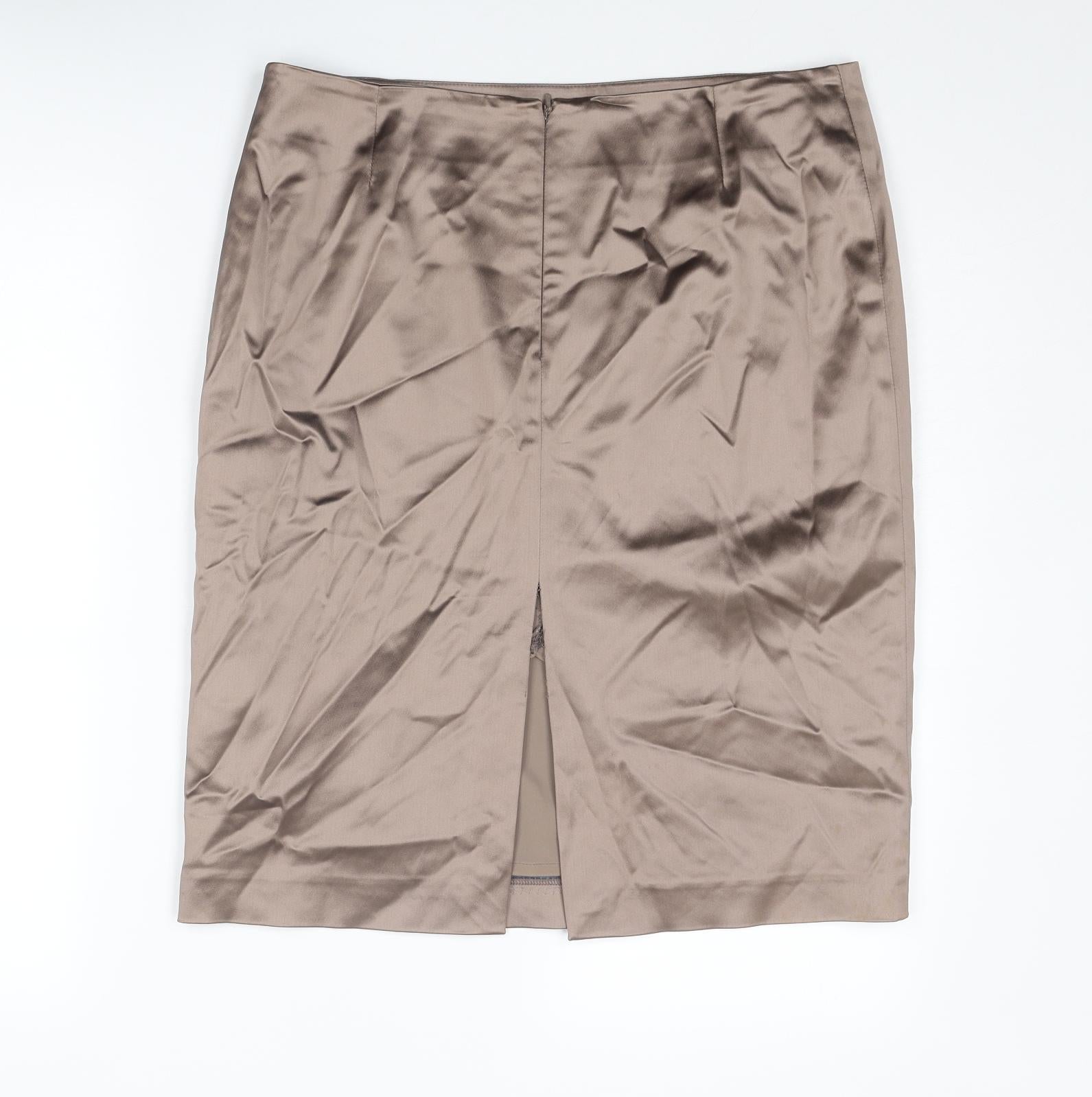 Womens Brown Polyester Straight & Pencil Skirt Size 14 Zip