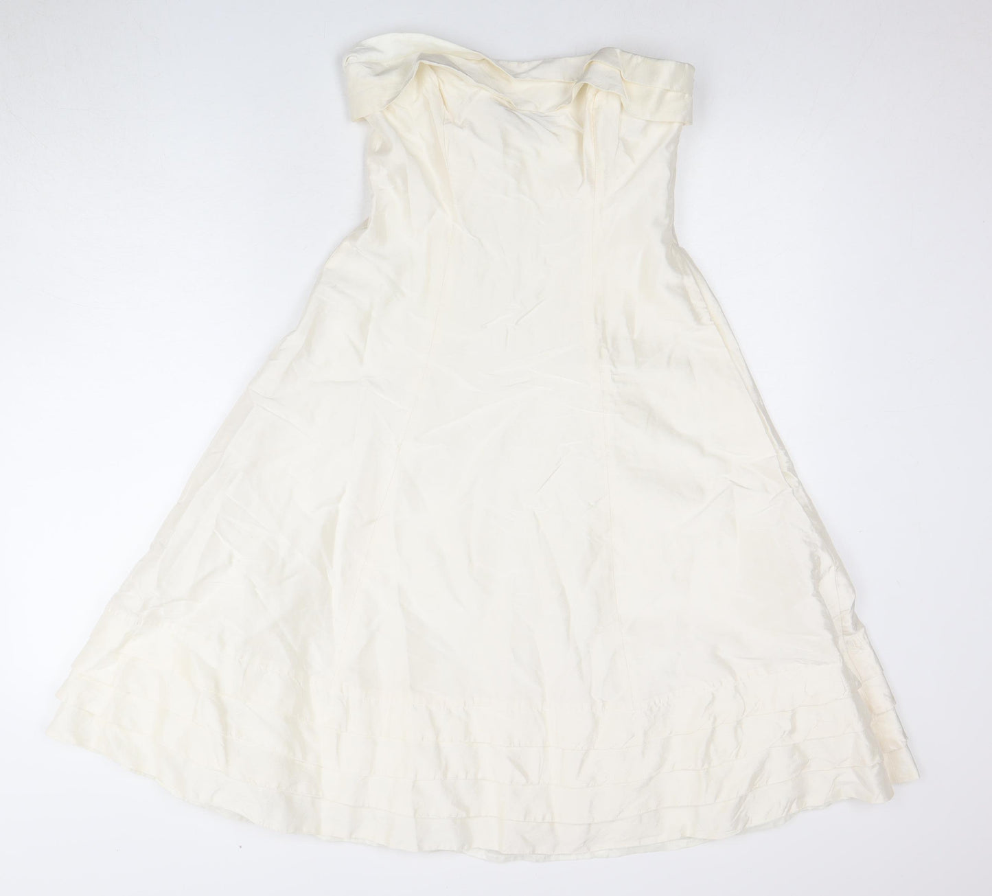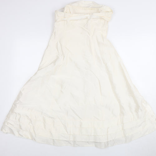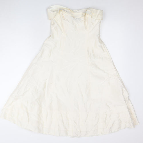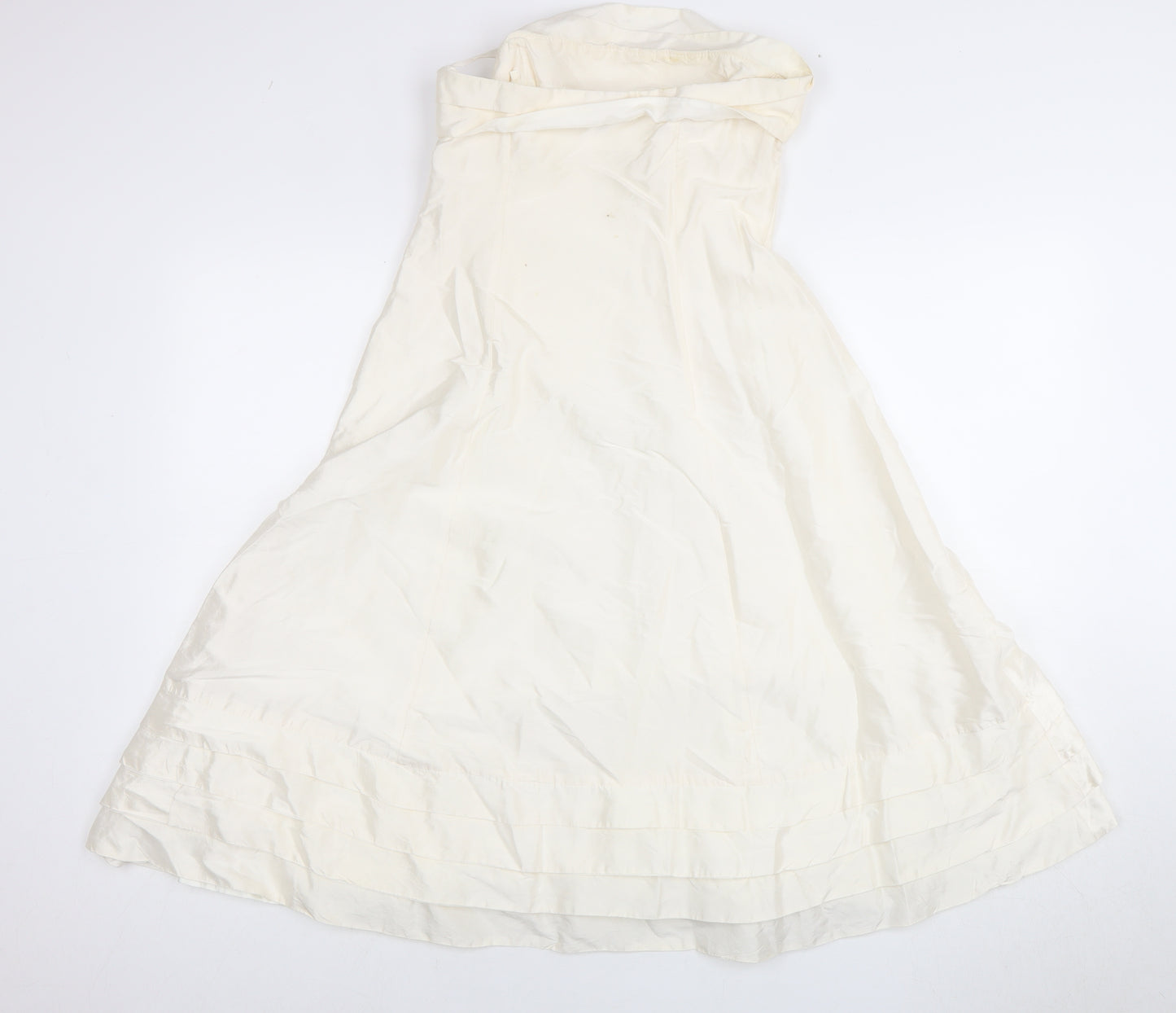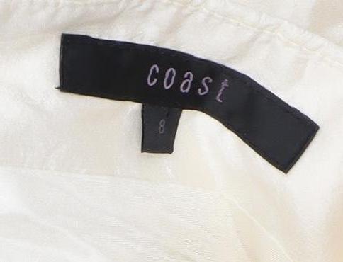 Elevate your wardrobe with this elegant Coast dress, perfect for those who appreciate understated sophistication. Crafted from luxurious satin fabric, this mid-length A-line dress in an exquisite ivory shade effortlessly exudes timeless style. The figure-flattering silhouette drapes beautifully, thanks to its sumptuous material blend of 75% acetate and 25% cupro. The subtle cowl neckline adds a touch of refinement, making it a versatile addition to any woman's collection. Lined for extra comfort, it offers a secure and graceful fit. Despite some slight wrinkling, this dress retains its elegance and would serve as a sophisticated choice for both formal gatherings and casual affairs when styled appropriately. Doubling as a versatile piece, it fits seamlessly into a variety of occasions, especially when the sophistication of ivory is your preference. Designed for those special moments, yet versatile enough to wear on other occasions, this dress deserves a place in your collection.