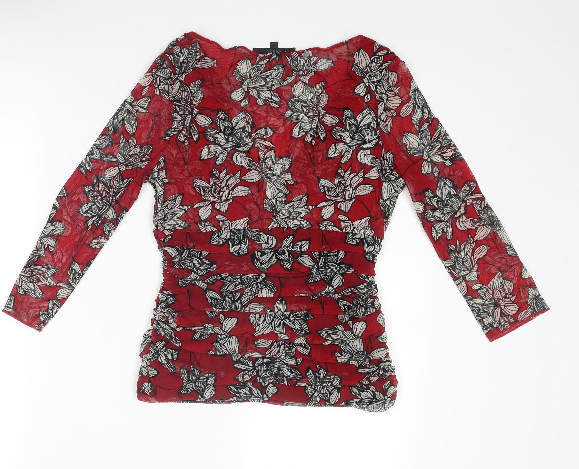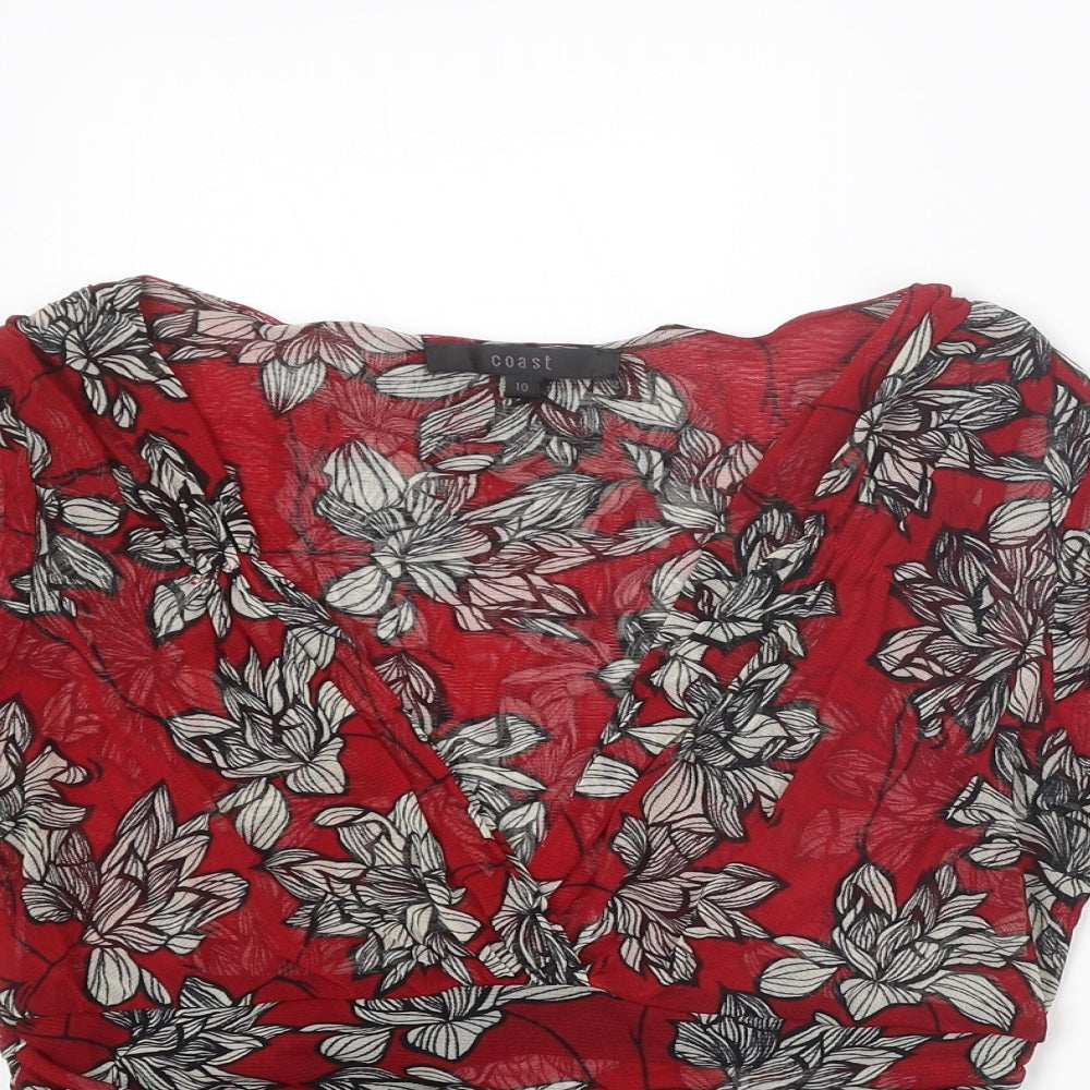 Womens Red Floral Polyester Basic Blouse Size 10 V-Neck
