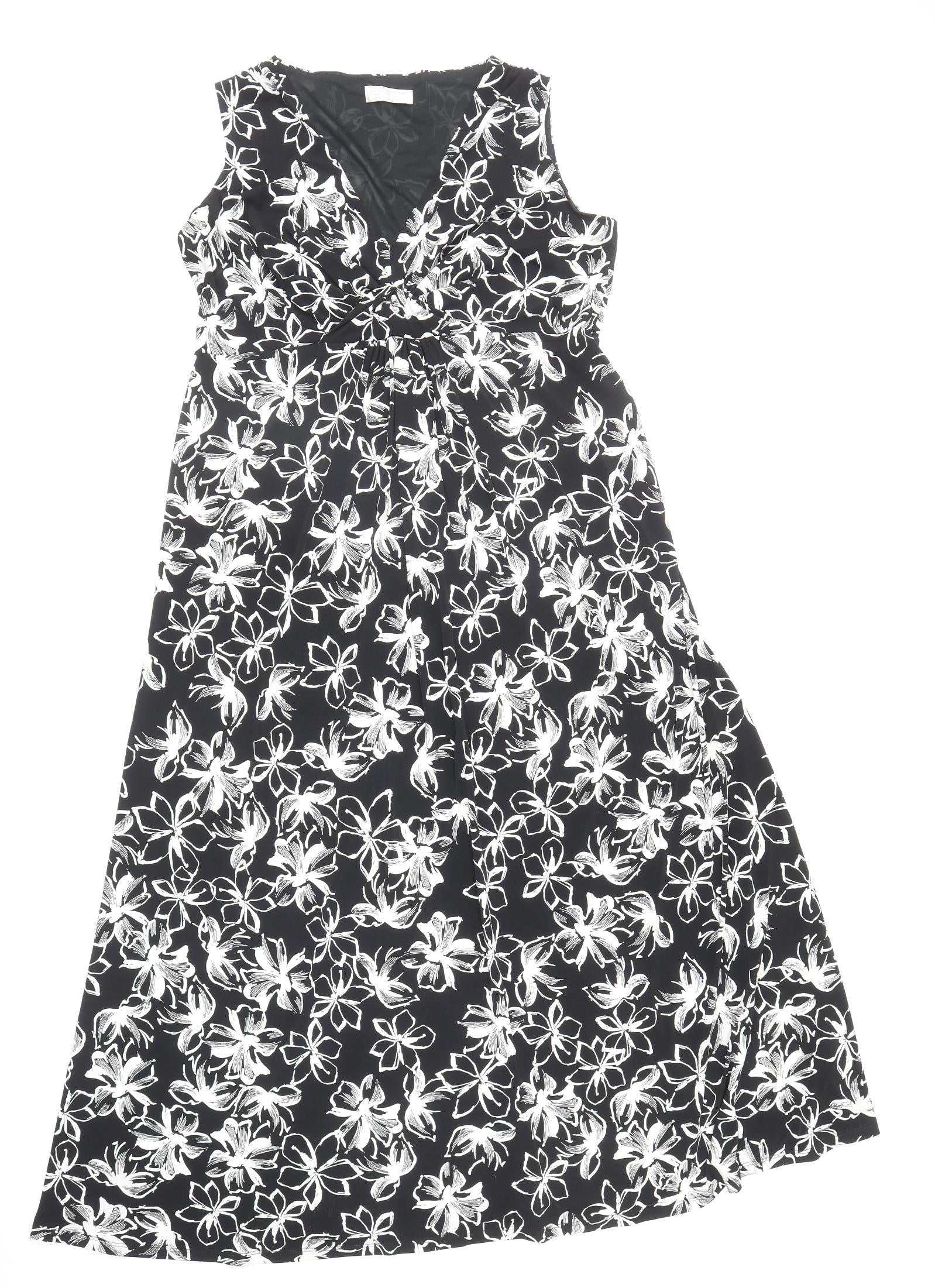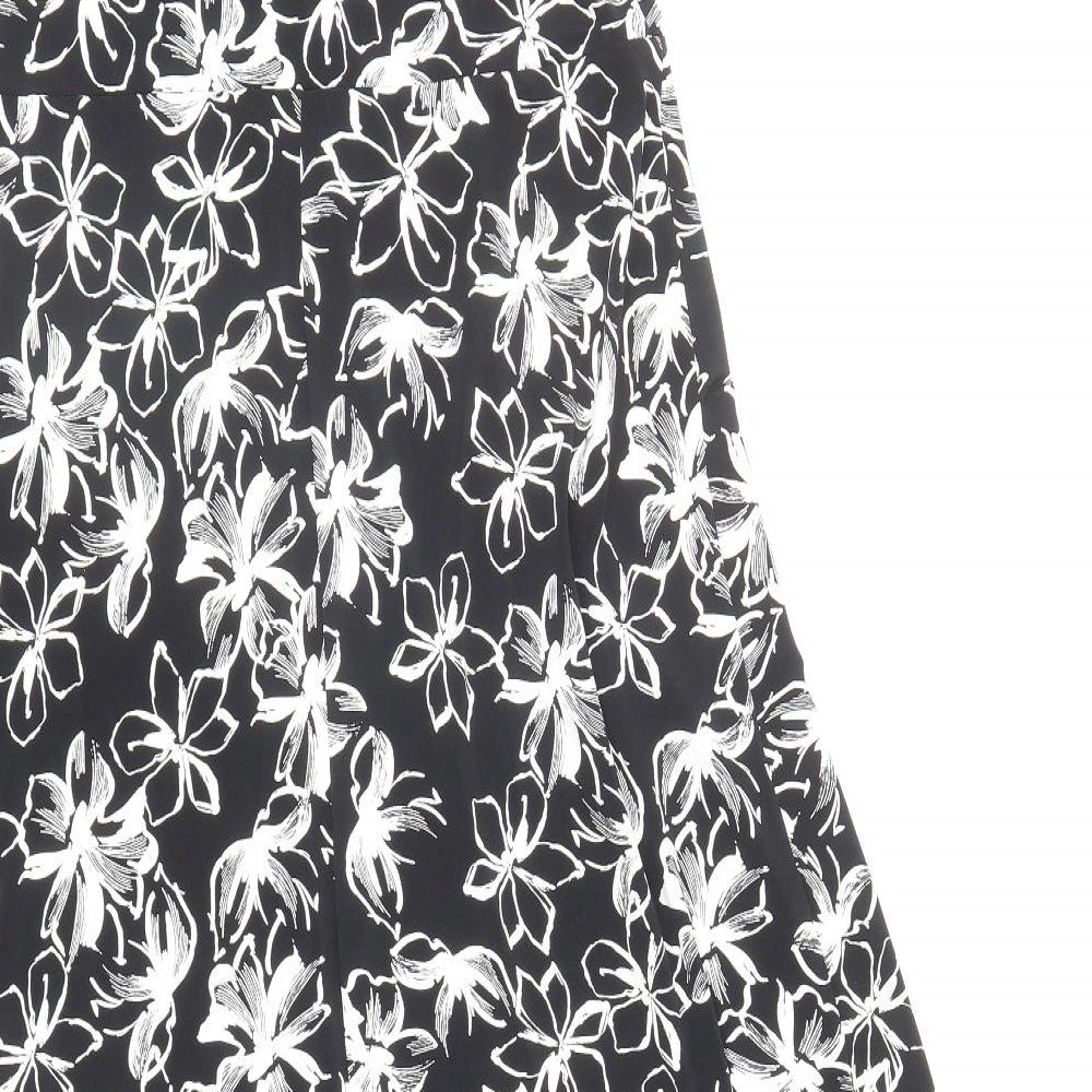Womens Black Floral Polyester Fit & Flare Size 16 V-Neck Pullover