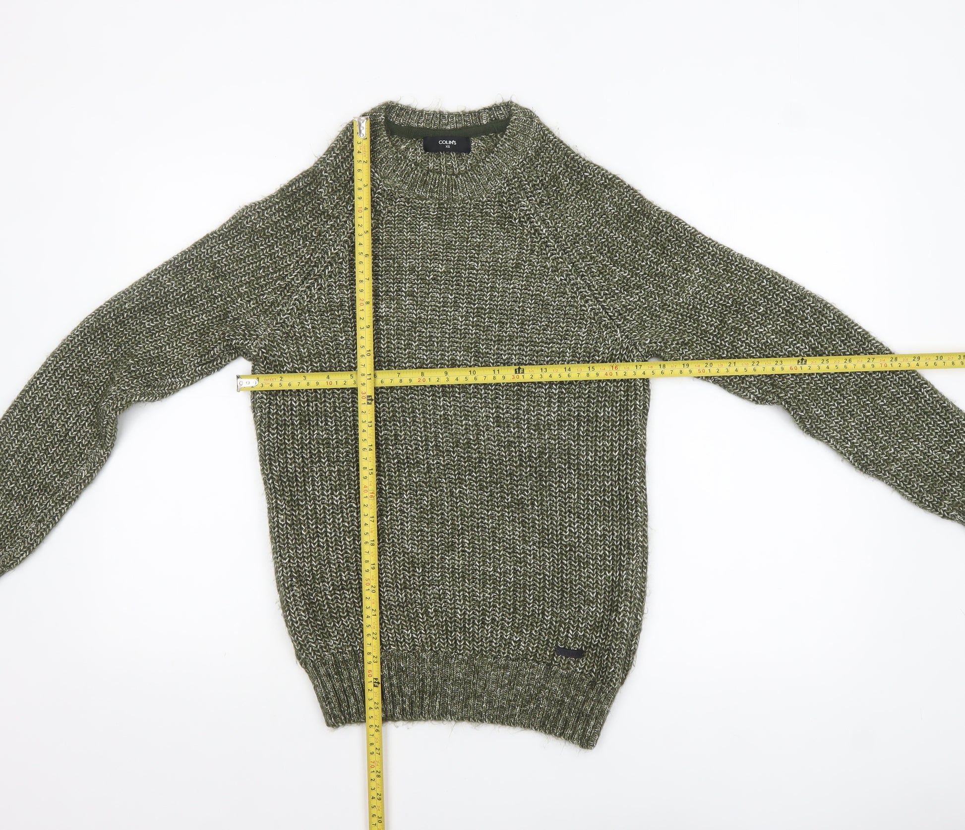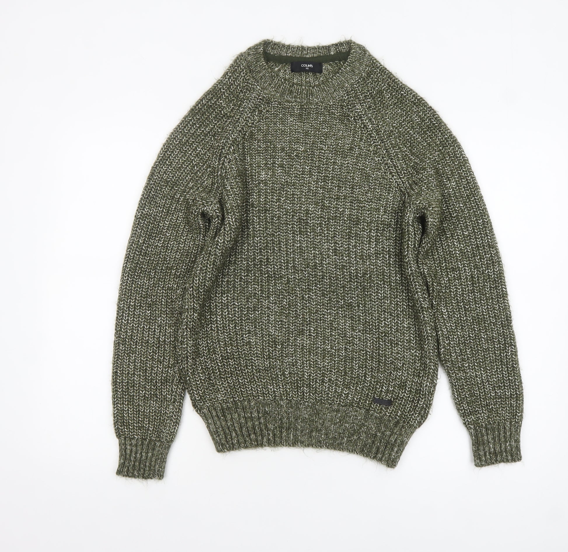 Stay effortlessly stylish and comfortable with this COLIN'S men's chunky knit pullover jumper in a versatile green hue. Designed with a classic crew neckline and a cosy long-sleeve finish, this jumper combines timeless style with modern comfort. The mixed yarn texture creates a visually rich knit that adds depth to your wardrobe while remaining soft and wearable. Crafted from a durable and comfortable blend of cotton, polyester, acrylic, and viscose, the fabric is naturally breathable yet warm, making it perfect for cool autumn or winter days. The ribbed cuffs, hem, and neckline ensure a snug fit and help retain shape even after frequent wear. Its chunky-knit style gives off a classic aesthetic suitable for casual, laid-back outings, weekend wear, or layering for outdoor adventures. The soft stretch in the fabric provides easy movement and comfort without compromising the structured look. Despite light overall wear, the jumper remains in excellent condition with no visible marks, damage, or pilling, ready to become a wardrobe favourite. Machine washable for easy care, it’s ideal for everyday use while maintaining durability and quality. Pair this green COLIN'S jumper with dark denim jeans and sturdy boots for a rugged yet refined look, or wear it under a casual jacket for added warmth during colder months. With its classic design and trusted craftsmanship, this piece ensures practicality and stylish simplicity that never goes out of fashion. Perfect for men who appreciate comfort and timeless knitwear that fits seamlessly into any casual outfit rotation.