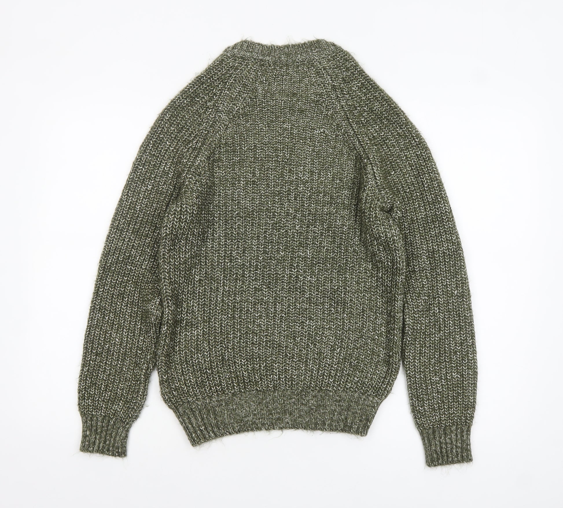 Mens Green Chunky Knit Crew Neck Pullover Jumper XS