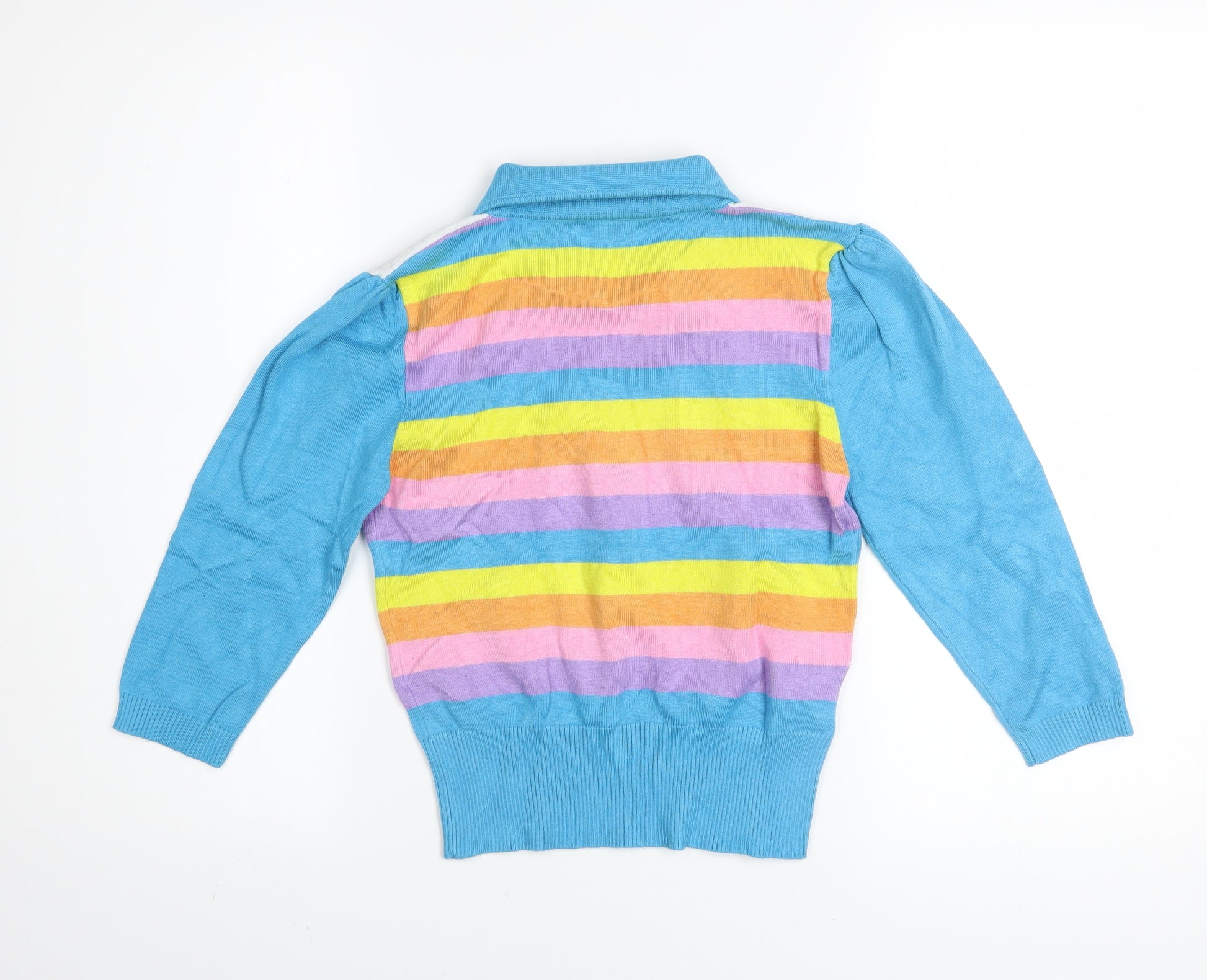Women’s Multicoloured Collared Rainbow Stripe Jumper Size 8