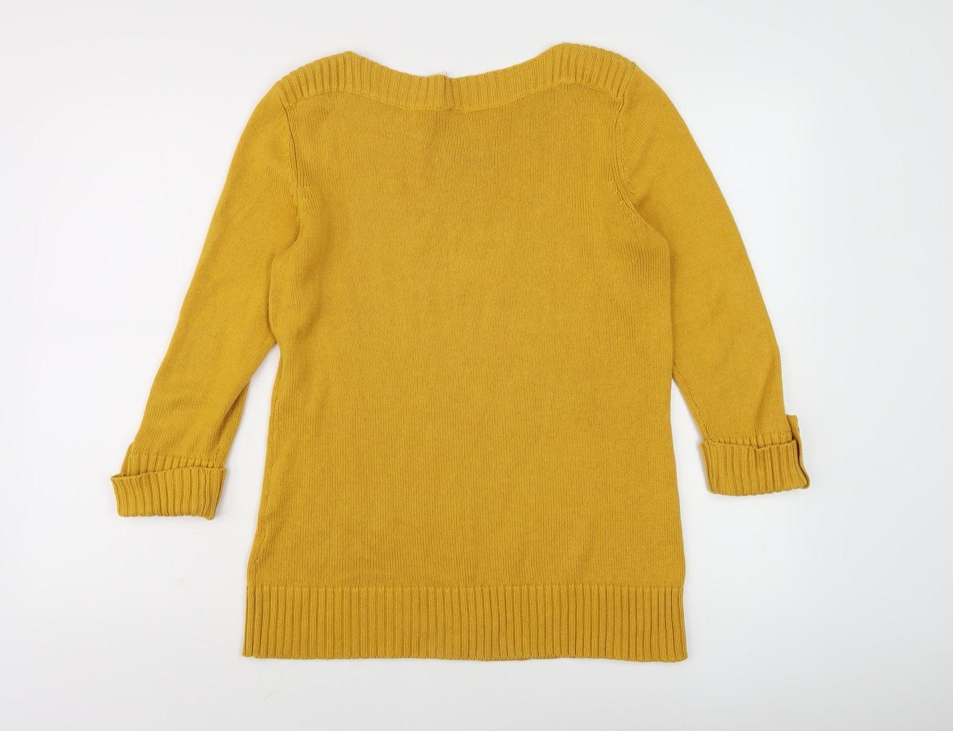 Joules Women Yellow Cotton Blend Boat Neck Long Sleeve Jumper UK 12
