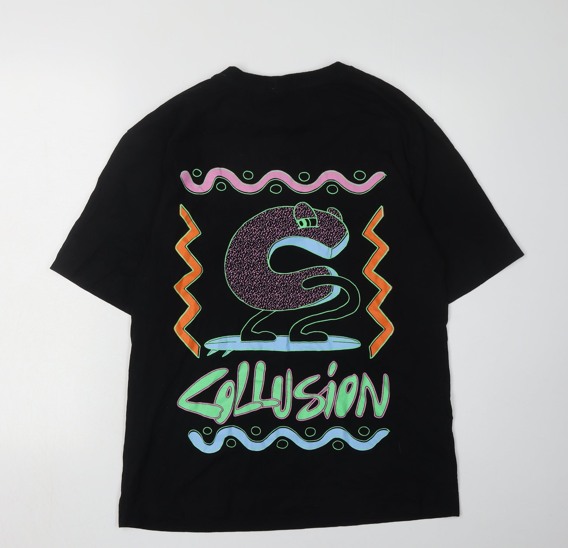 Collusion Unisex Black T-Shirt XL Graphic Short Sleeve