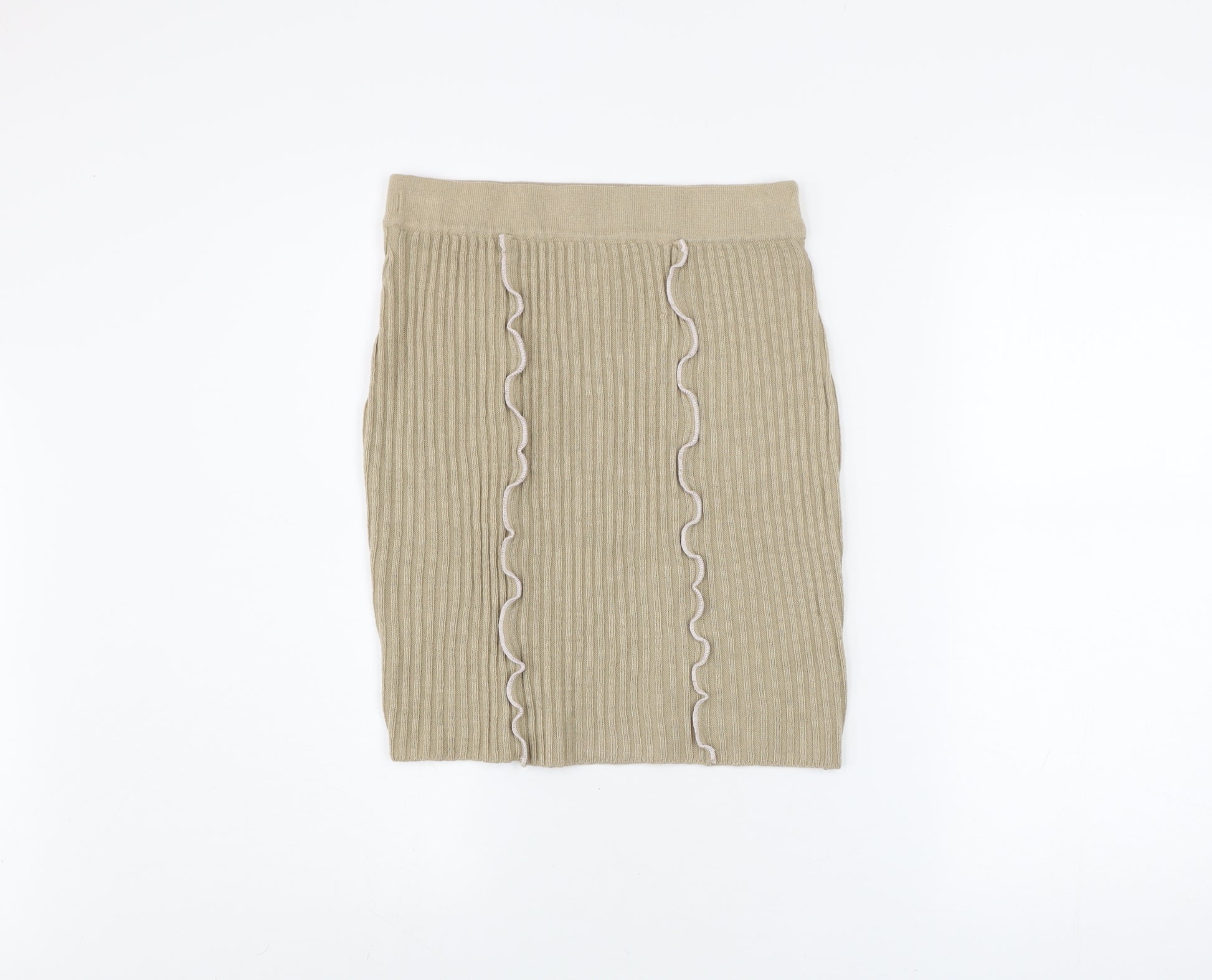Collusion Women’s Beige Knit Ruffle Pencil Skirt Size 12