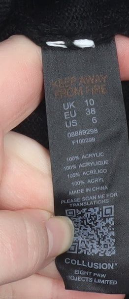 Collusion Women’s Black Mock Neck Knit Jumper Size 10 Acrylic
