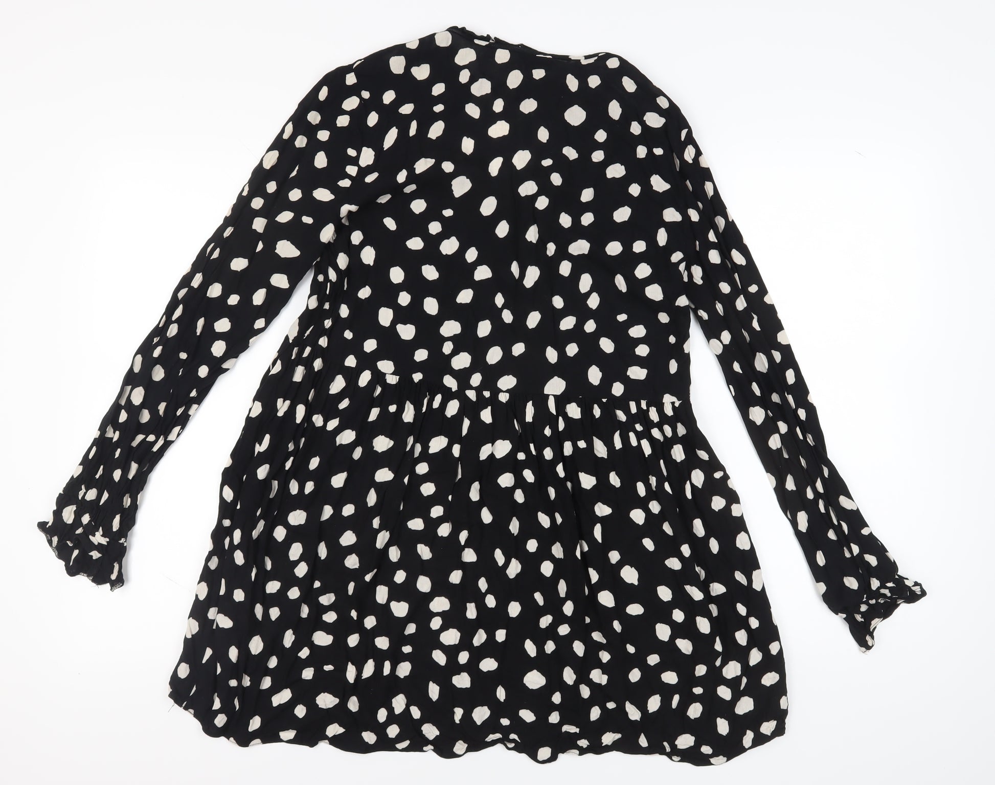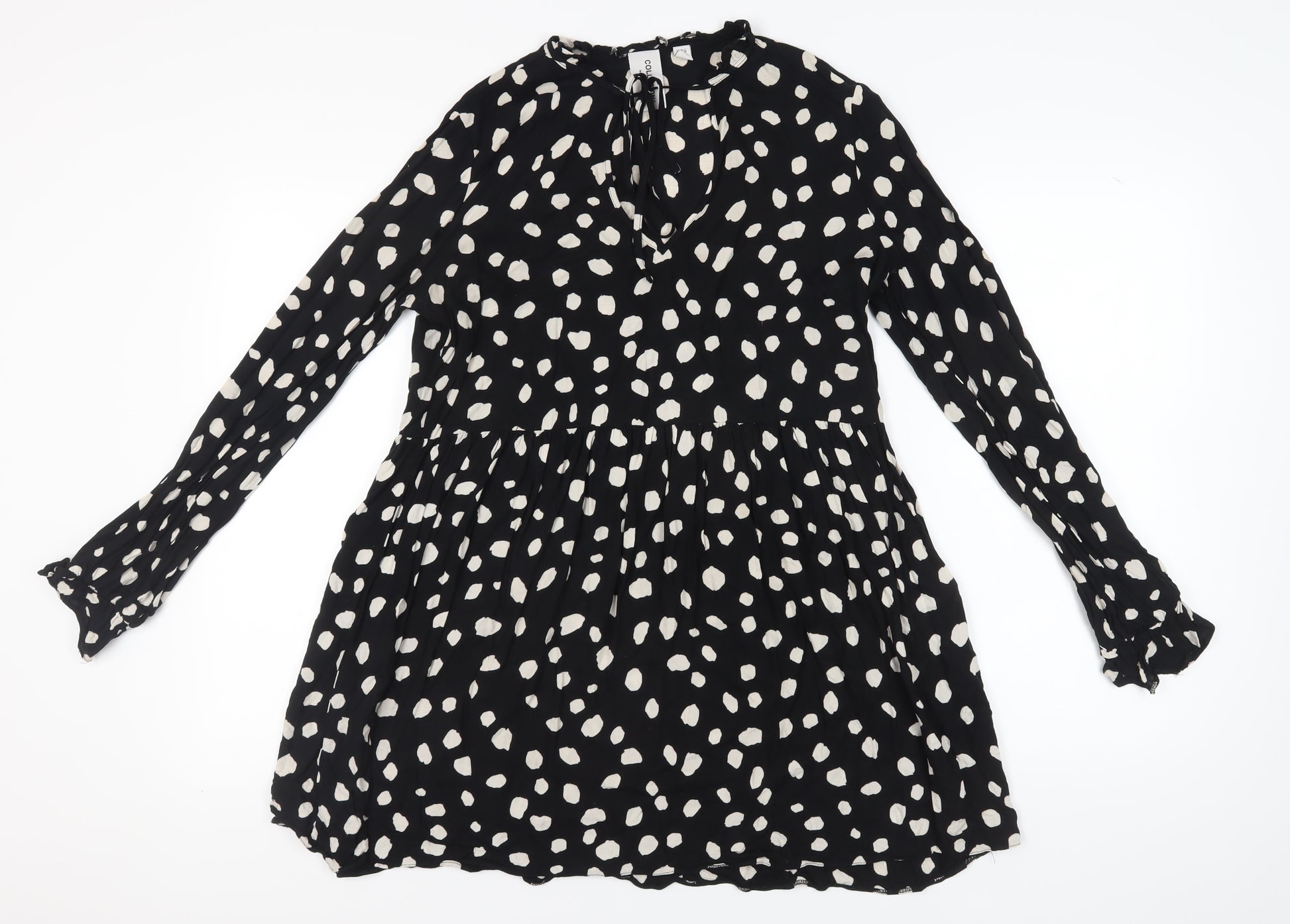 Discover this chic black polka dot dress by Collusion, perfect for any occasion. Designed for women in size 12, this stylish piece features long sleeves, offering a versatile and trendy look. Despite being in excellent condition, light wear is visible, providing an extra layer of vintage charm. Pair with your favourite accessories for a standout impression.