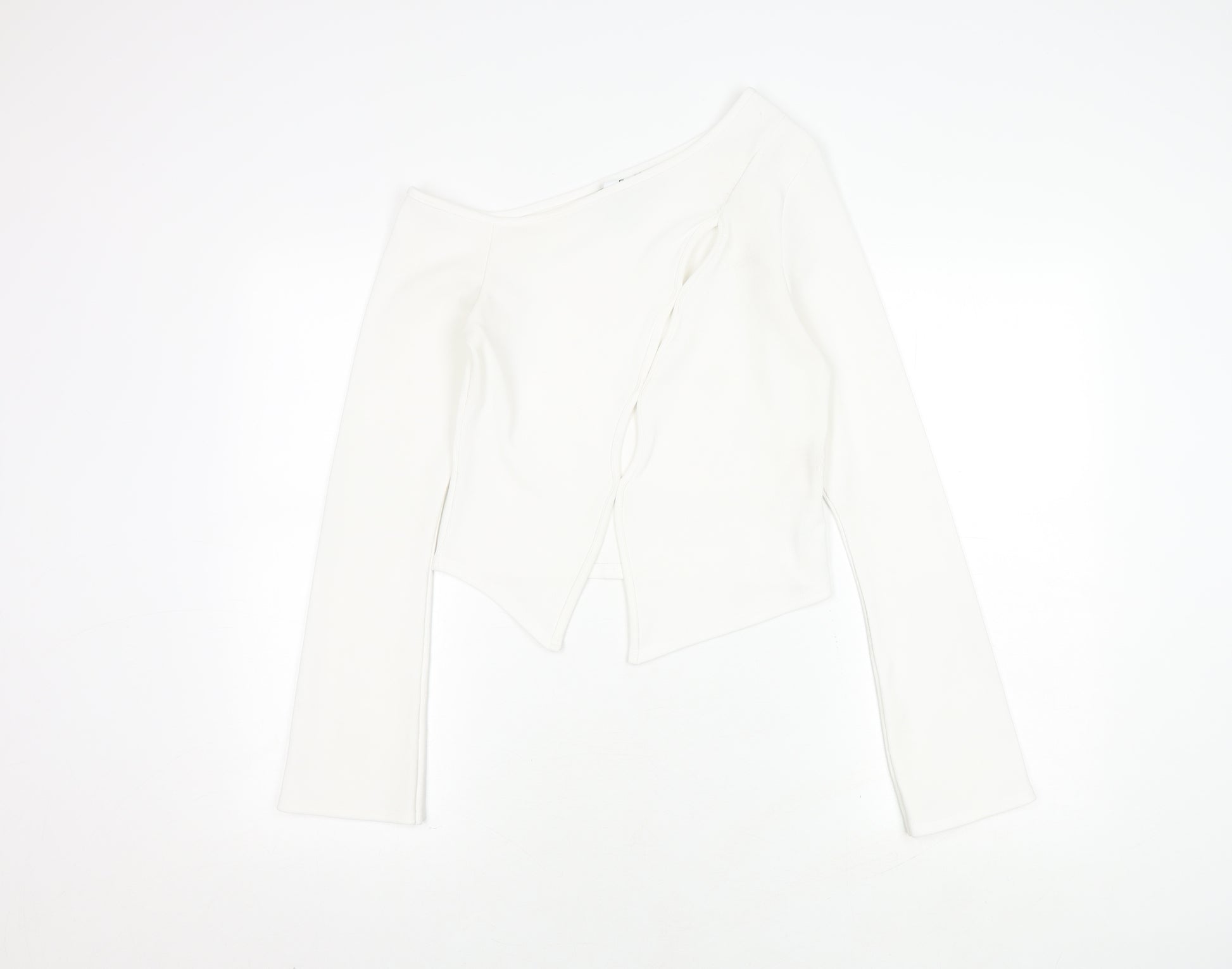 Embrace effortless style with the Collusion Women's White Asymmetrical Blouse. Made from a soft blend of 97% polyester and 3% elastane, this jersey fabric top offers a snug fit for maximum comfort. Featuring a chic off-the-shoulder neckline and stylishly long asymmetrical sleeves, it's perfect for a casual outing. The solid white colour and sleek design create a fashionable statement, easily paired with any preferred bottom. Machine washable and designed for ease of care, this blouse is a must-have for those who appreciate both style and convenience. It's ideal for any season, ensuring you always look chic whether you're out for a casual meet-up or just relaxing at home. Don’t miss out on this versatile wardrobe staple.