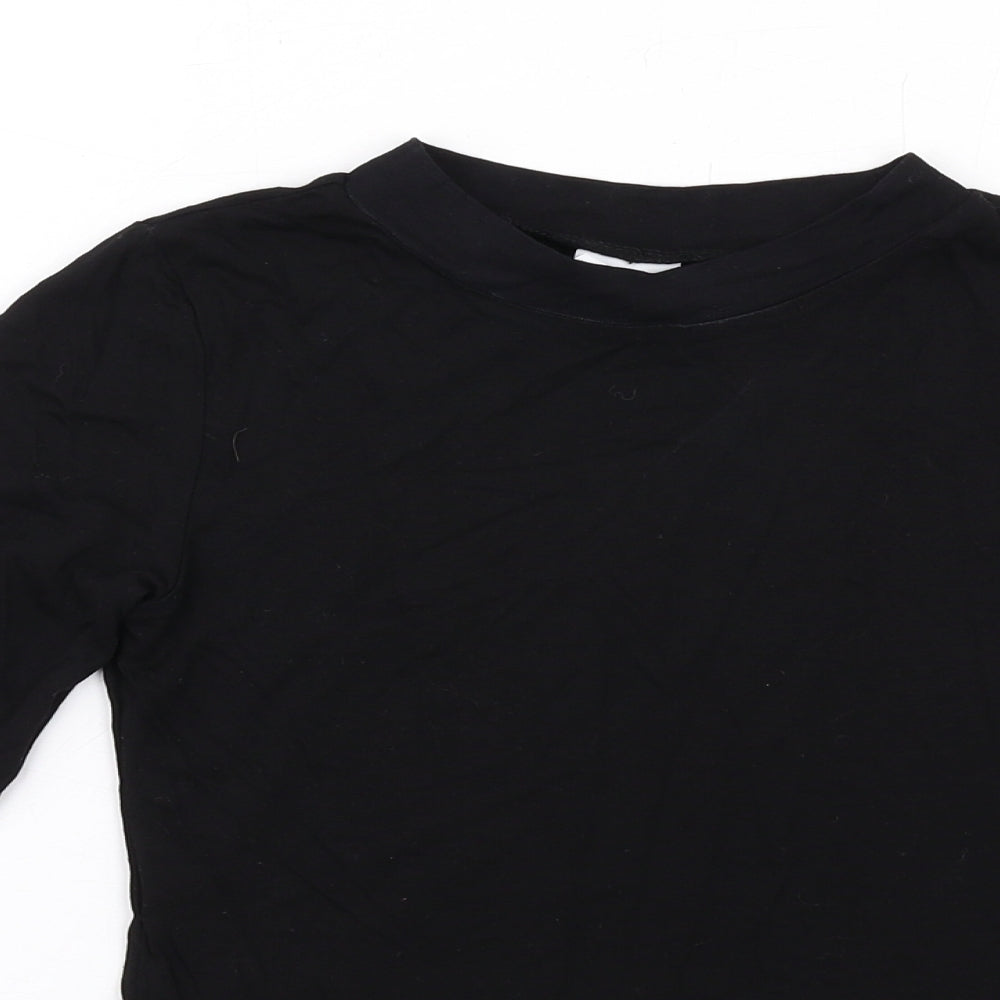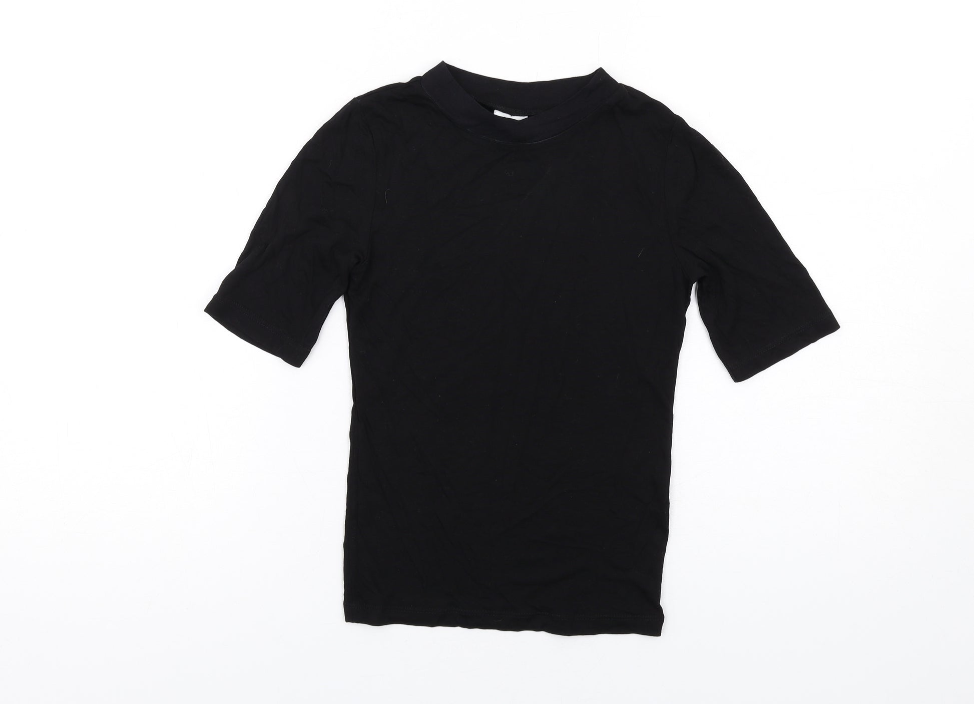 Womens Black Cotton Basic T-Shirt Size 4 Mock Neck
