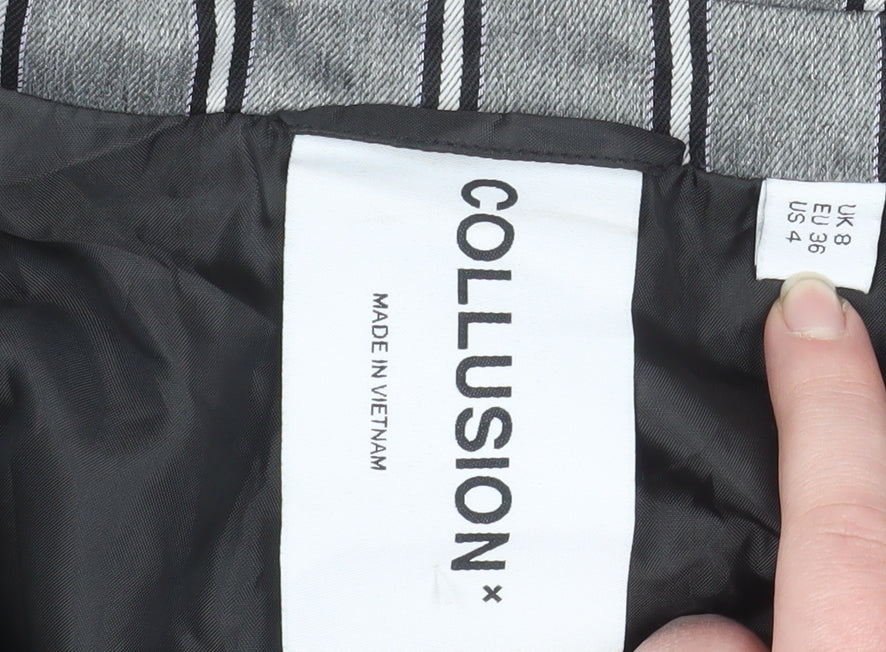 Collusion Women's Grey Pinstripe Cropped Double-Breasted Blazer UK 8