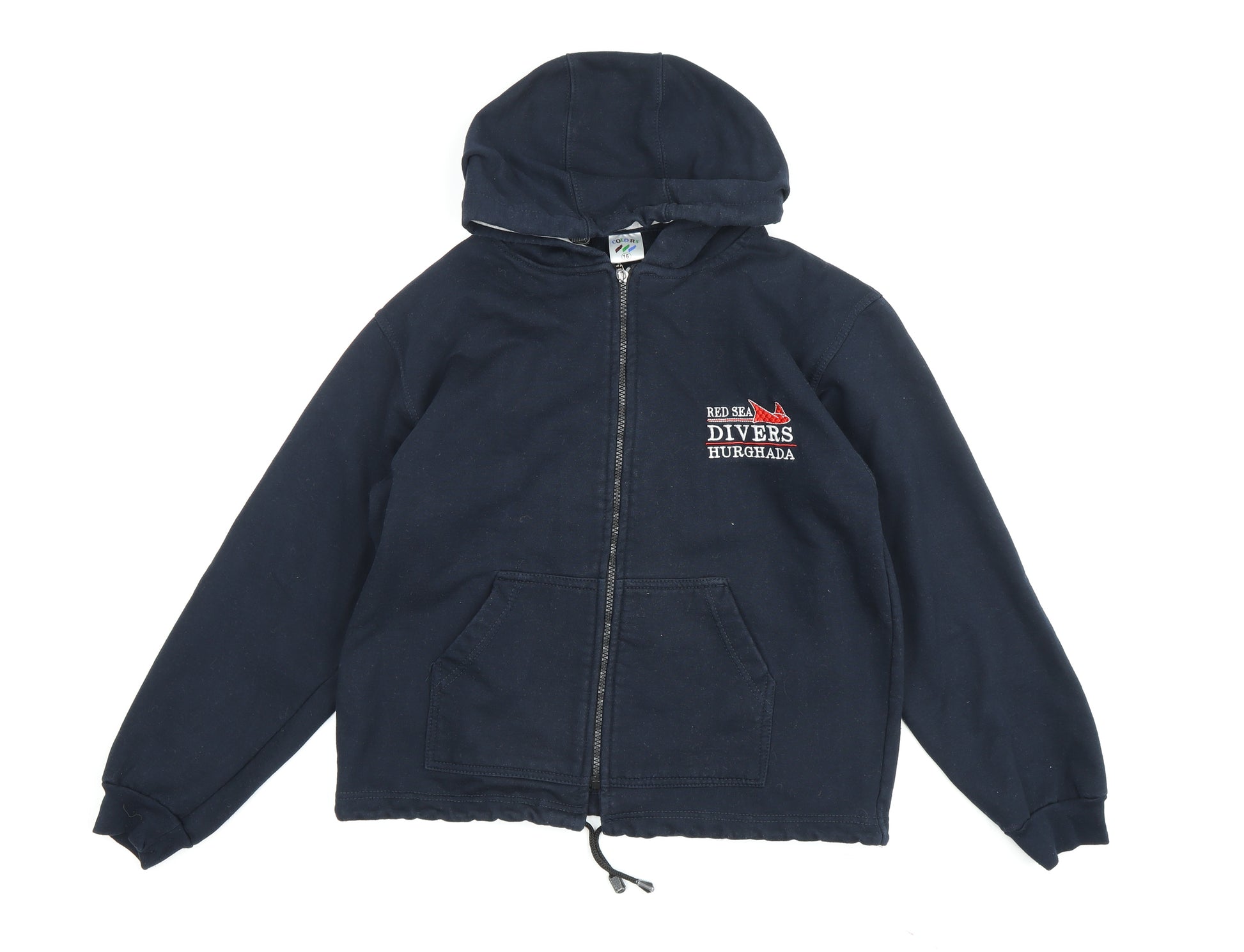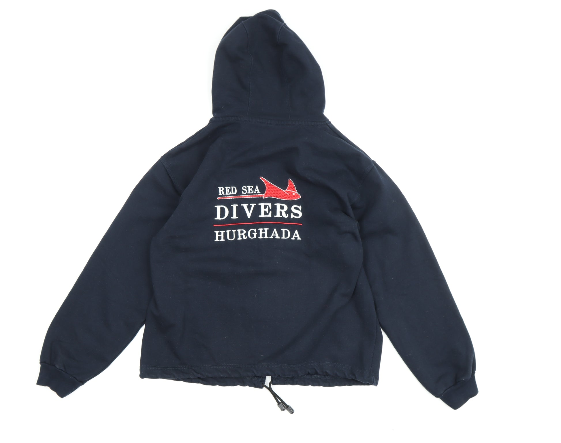 Elevate your casual wardrobe with this striking women's hooded jacket in a classic navy blue. Designed for comfort and style, this jacket features an embroidered 'Red Sea Divers Hurghada' accent, adding a unique touch to your ensemble. The full zip closure ensures ease of wear, while the practical hood and convenient pockets make it perfect for everyday use, whether you're heading out for errands or a weekend adventure. Crafted from comfortable cotton knit fabric, this jacket offers warmth during the cooler autumn and winter seasons. The jacket is tailored for a regular fit, providing a flattering silhouette that's perfect for layering. Despite its vibrant appearance, it's machine washable for easy care, ensuring it remains a staple piece in your wardrobe for years to come. Embrace a touch of wanderlust in this travel-themed jacket, ideal for casual outings and travel. Enjoy minimal wear and tear with no visible stains or damage, making this a fantastic find for anyone looking to add a unique element to their fashion collection.