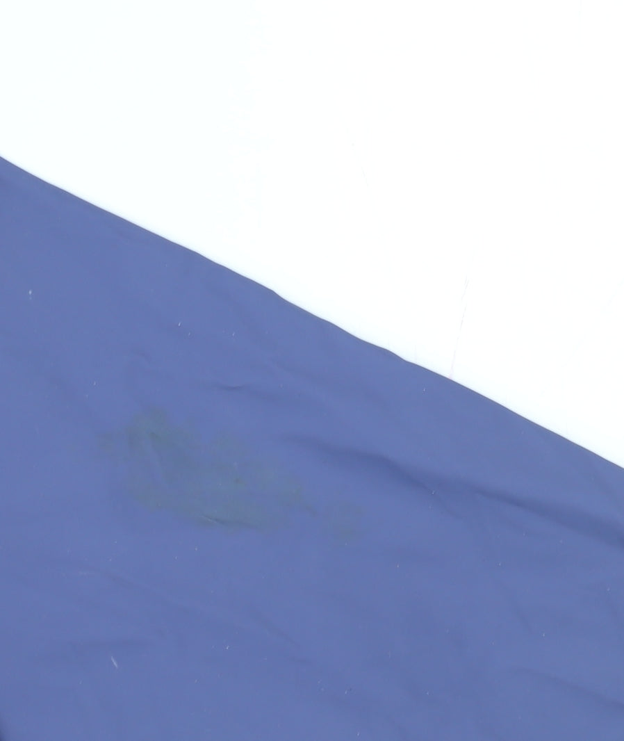 Stay dry and comfortable in all weathers with this Columbia waterproof rain jacket. Designed for outdoor performance, this unisex jacket in blue is made from 100% nylon, offering a lightweight yet durable outer shell that provides excellent protection from rain and wind. The practical design features a full zip with snap fastening, an adjustable hood, and two spacious front pockets for convenient storage on the go. The regular fit and mid-length cut ensure ease of movement, making it perfect for hiking, walking, cycling, or daily wear. The interior lining is polyester, giving a smooth, breathable finish that enhances comfort during active use. The waterproof and windproof materials ensure you can confidently take on any weather conditions, while the elasticated cuffs seal in warmth. This versatile jacket offers both function and style for casual outings, travel, or outdoor adventures. Subtle Columbia branding on the chest adds a touch of quality associated with the brand’s outdoor expertise. In very good pre-owned condition, with only a light mark on the back, it remains fully functional and ready for plenty more adventures. Whether you’re heading out into the city or hitting the trails, this Columbia rain jacket combines reliable performance with timeless design, making it an essential addition to any wardrobe for the autumn, spring, or winter seasons.