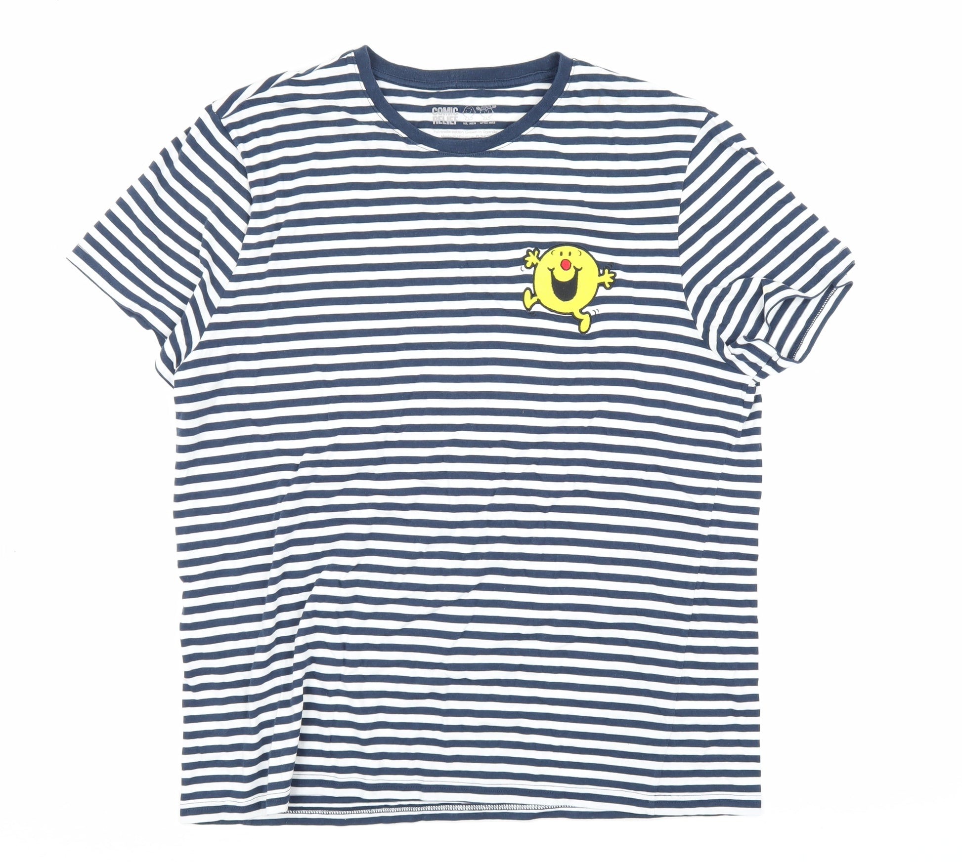Elevate your casual wardrobe with this Comic Relief T-shirt featuring the beloved Mr. Men character. With a classic crew neck and comfortable short sleeves, this striped T-shirt offers a fun and playful look suitable for both spring and summer. Crafted from 100% cotton, this piece ensures lightweight comfort and breathability. The blue and white stripes, combined with a cheerful embroidered accent, add a touch of whimsy to any outfit. Ideal for casual settings, this regular fit T-shirt caters to unisex adults, making it a versatile addition to anyone's wardrobe. The jersey fabric enhances its durability while maintaining a comfortable feel against the skin. Easy to care for with machine washability, it provides convenience without compromising style. Whether you're a fan of the iconic characters or simply seeking a unique piece with personality, this Comic Relief T-shirt is an excellent choice for everyday wear.