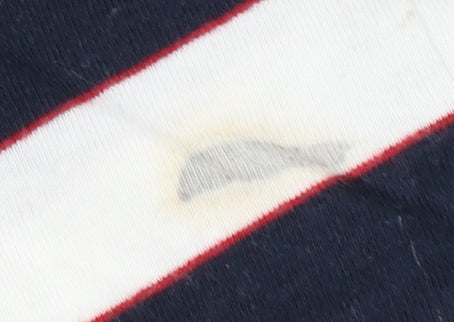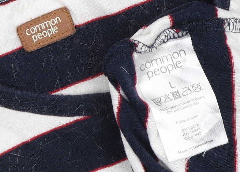 Upgrade your casual wardrobe with this stylish Common People T-Shirt, perfect for any fashion-forward man's collection. Featuring a classic striped pattern in a versatile multicoloured palette, this shirt adds a trendy touch to everyday outfits. Crafted from 100% cotton in a comfortable jersey fabric, it ensures breathable wear throughout spring, summer, and autumn seasons. The crew neck and short sleeves offer a classic silhouette that suits various occasions, whether you're heading to a casual outing or just relaxing at home. While it's in very good condition, please note the minor visible stain on the back, which is reflected in the affordable pricing. Effortlessly machine washable, this shirt combines style and convenience, making it a valuable addition to your wardrobe.