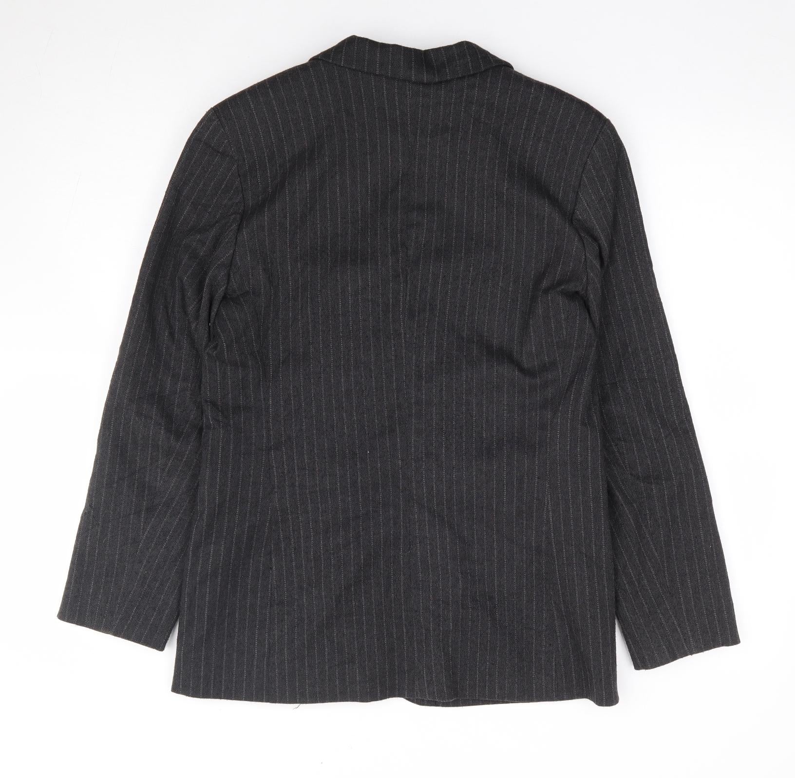 Womens Grey Pinstripe Polyester Jacket Suit Jacket Size 8