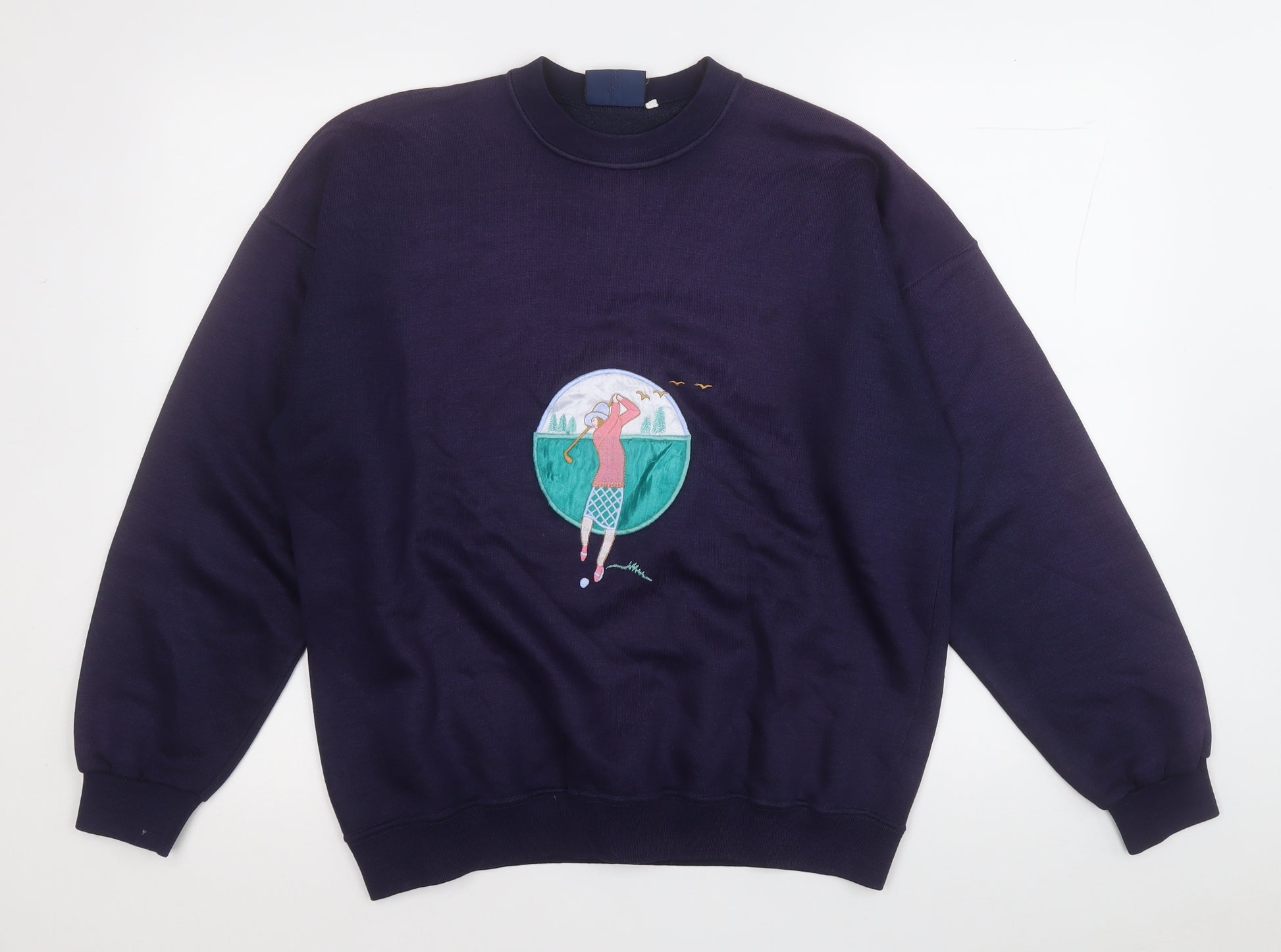 Mens Blue Polyester Pullover Sweatshirt Size L