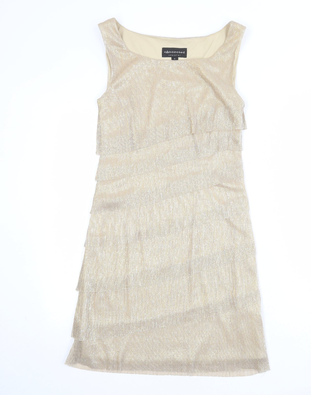 Womens Gold Polyester Shift Size 6 Round Neck Pullover
