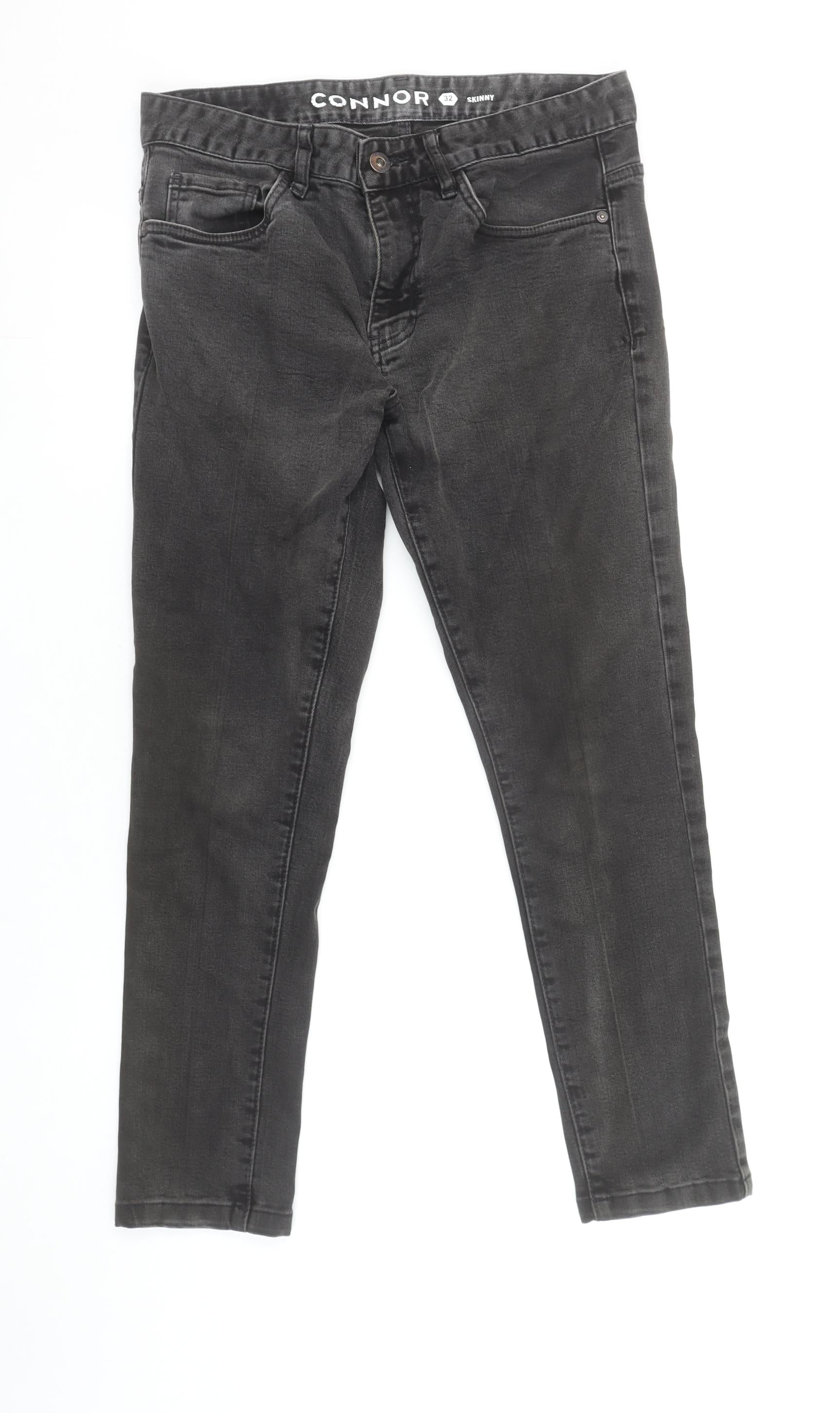 Step into everyday comfort and modern style with these Connor black skinny jeans in size 32. Crafted from a high-quality blend of cotton, polyester, viscose, and elastane, these jeans deliver a soft yet durable feel with just the right amount of stretch for a flattering slim fit. Designed with a traditional five-pocket layout and a button and zip closure, they combine casual ease with polished appeal. The dark wash finish provides versatile wear from day to night, pairing effortlessly with a casual T-shirt or a crisp shirt for a smarter look. The denim material ensures breathable comfort, while the added elastane promotes flexibility, maintaining shape even after multiple wears. Ideal for cooler seasons such as autumn and winter, these jeans also perform well in spring when paired with lightweight tops. Practical and stylish, they balance everyday wearability with a contemporary silhouette that enhances your look without compromising on comfort. Machine washable for easy care, they are a wardrobe essential for anyone who values simple design and long-lasting performance. In excellent pre-owned condition, these jeans show minimal signs of wear with no visible defects. Perfect for both relaxed weekends and evenings out, they represent an excellent value addition to your denim rotation. Whether you’re dressing up for a casual meeting or keeping things simple on a day out, these Connor skinny jeans deliver style, versatility, and comfort in one impressive pair. Grab this timeless and easy-to-style piece for a wardrobe refresh you can rely on throughout the seasons.