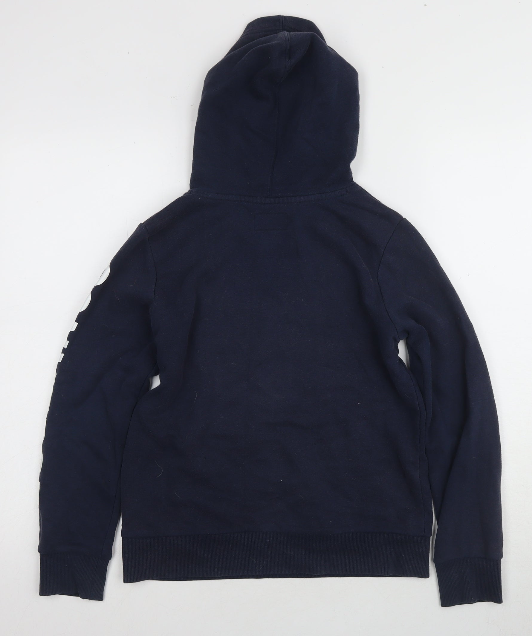 This Converse boys' pullover hoodie in blue is a must-have for casual wear. Made from a comfortable blend of cotton (60%) and polyester (40%), it features a stylish logo accent and a hooded design, perfect for keeping warm during the autumn, spring, and winter seasons. The regular fit ensures a comfortable and relaxed feel, while the machine washable fabric offers easy garment care. Ideal for casual occasions, this hoodie also includes convenient pockets for added functionality. With its sports theme and no visible tags, it is in excellent condition, ready to provide style and comfort to your child.
