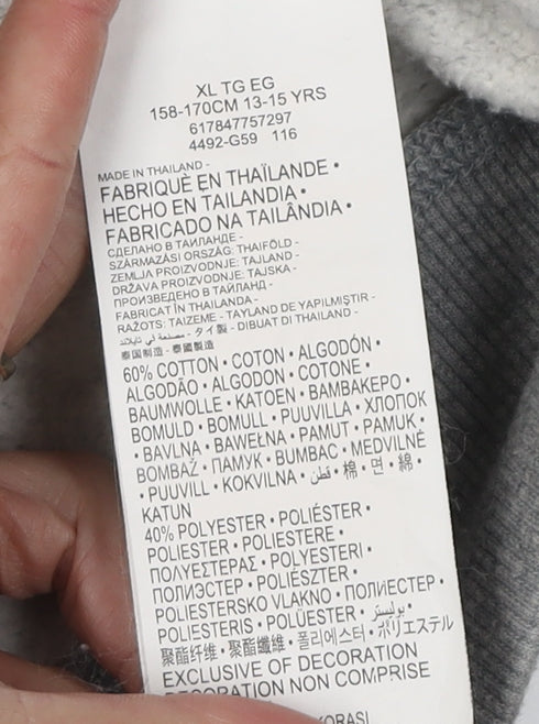 Elevate your casual wardrobe with this classic grey Converse All Star boys' hoodie. Designed in a comfortable pullover style, this hoodie is perfect for the colder seasons of autumn and winter. Made from a soft jersey fabric, it combines 60% cotton and 40% polyester to offer durability and comfort. The iconic Converse logo accent adds a touch of timeless style, making it an essential piece for any young fashion enthusiast. While it boasts a crew neckline and long sleeves, this hoodie also features a practical hood, perfect for keeping warm on chillier days. Despite a few minor stains, the overall condition remains very good, ensuring that this piece will continue to offer style and comfort. Machine washable and easy to care for, it's a practical choice for busy young lifestyles. A perfect casual choice for school or everyday wear, this hoodie is designed to entice and deliver style effortlessly.