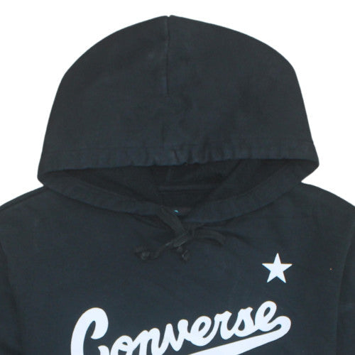 This Converse men's black pullover hoodie combines casual style with everyday comfort, making it a great addition to any wardrobe. Designed for a regular fit, it features a soft fleece fabric crafted from 78% cotton and 22% polyester, ensuring a warm yet breathable feel. The hoodie includes a drawstring closure at the hood for adjustable comfort and practicality, along with a handy front kangaroo pocket that offers easy storage or a comfortable hand warm place on cooler days. The bold Converse logo print across the chest adds a sporty, stylish edge in keeping with the brand’s athletic heritage. Perfect for autumn, winter, and spring wear, this hoodie is ideal for layering and transitioning through the seasons. Its simple pullover design and ribbed cuffs provide a neat shape, while the classic crew neckline keeps the look timeless. Suitable for men seeking comfort during casual outings, gym sessions, or relaxed weekends, it’s both functional and fashionable. The hoodie’s machine washable fabric ensures easy care and long-lasting wear. In excellent pre-owned condition with light wear and no visible damage, it maintains its shape, print, and softness. Whether paired with jeans, joggers, or shorts, this Converse hoodie delivers effortless style with practical appeal. A must-have for any fan of quality, comfortable, and on-brand sportswear, this piece embodies Converse’s signature look of athletic simplicity combined with modern streetwear flair. Don't miss this opportunity to own an iconic Converse pullover hoodie that pairs exceptional comfort with an instantly recognisable design.